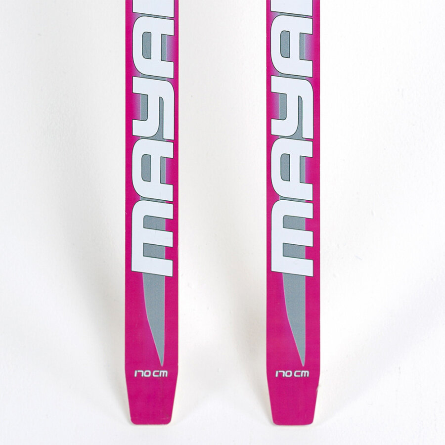 Купить Лыжи беговые Маяк 170 см деревянные с креплением NN75, малиновый-голубой