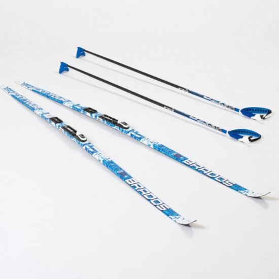 Лыжный комплект с креплениями 75 мм с палками 150 STEP Brados LS Blue