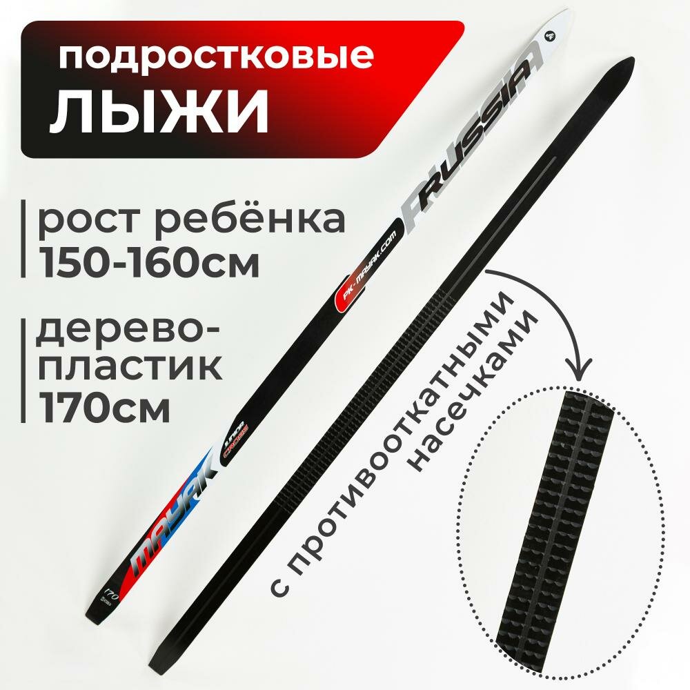 Купить Детские подростковые лыжи Маяк дерево-пластик ( с насечками) 170 см / Лыжи для детей ростом 150-160 см/ Черно-серые