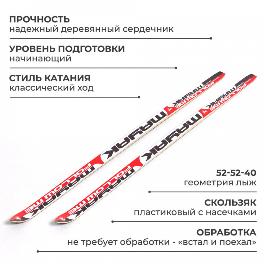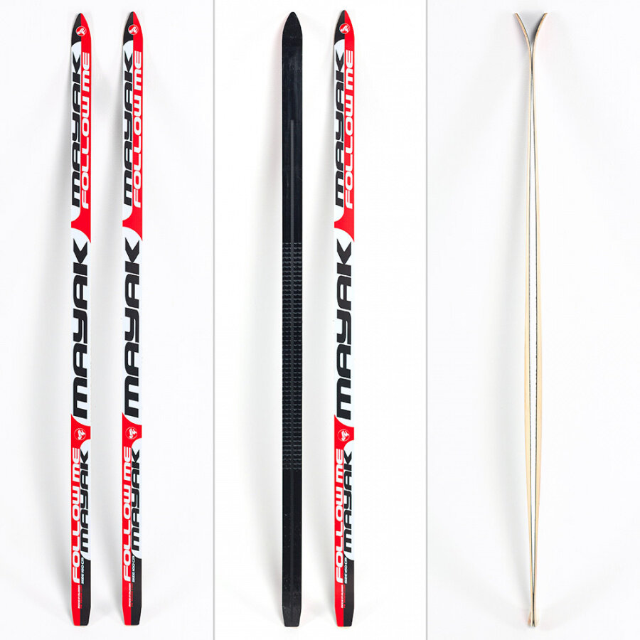 Купить Лыжи беговые подростковые Маяк 160 см пластиковые (дерево-пластик) красно-бело-черные