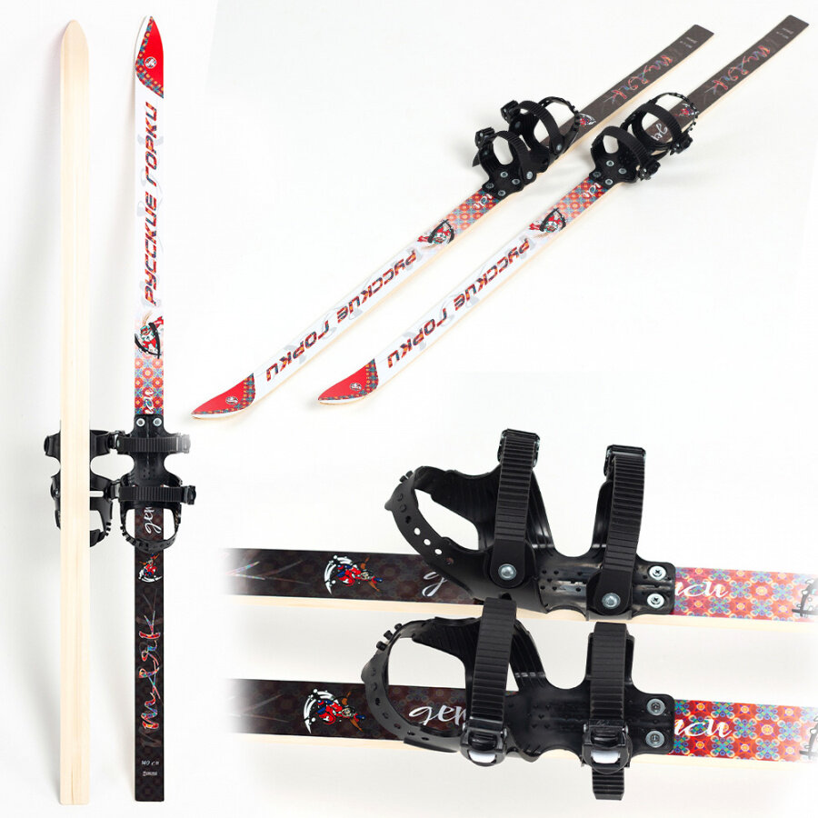 Купить Лыжи беговые Маяк детские подростковые 140 см с универсальными креплениями, деревянные красно-белые