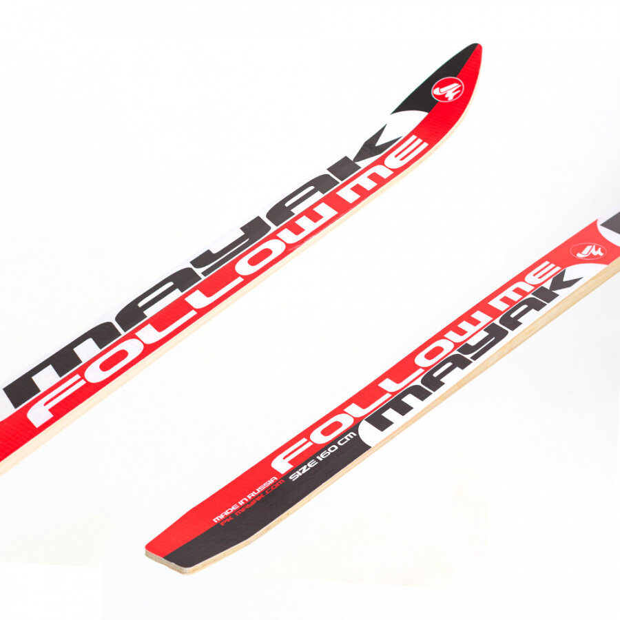 Купить Лыжи беговые Маяк детские подростковые 160 см с универсальными креплениями, деревянные красно-бело-черные