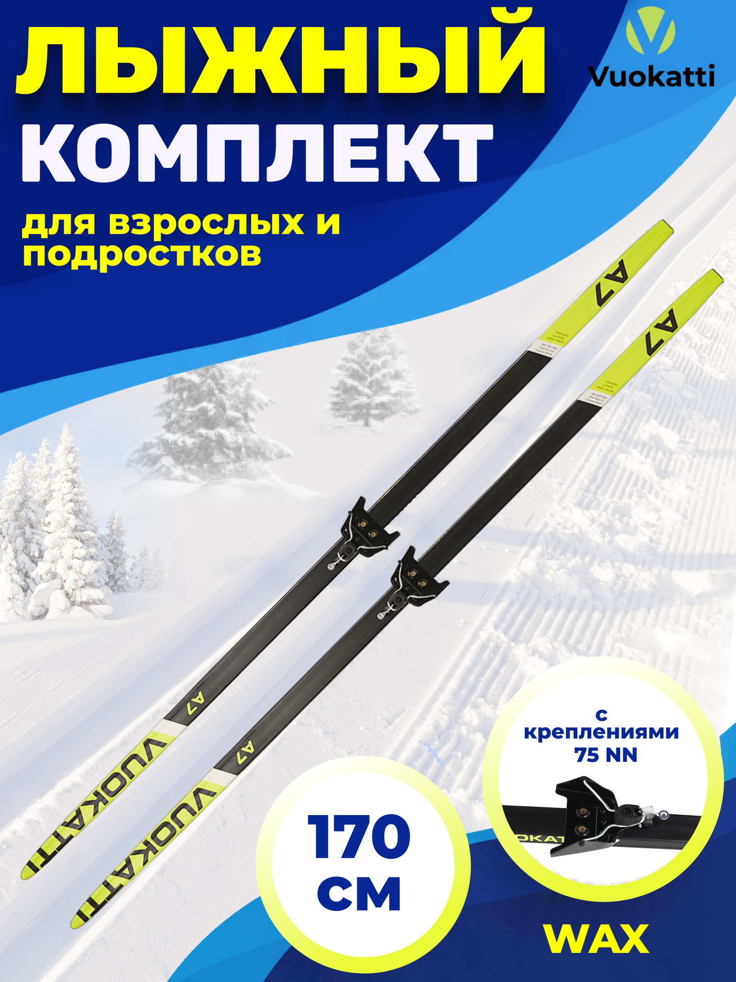 Купить Лыжи беговые VUOKATTI 170 см с креплением 75 мм Wax цвет Black/Yellow