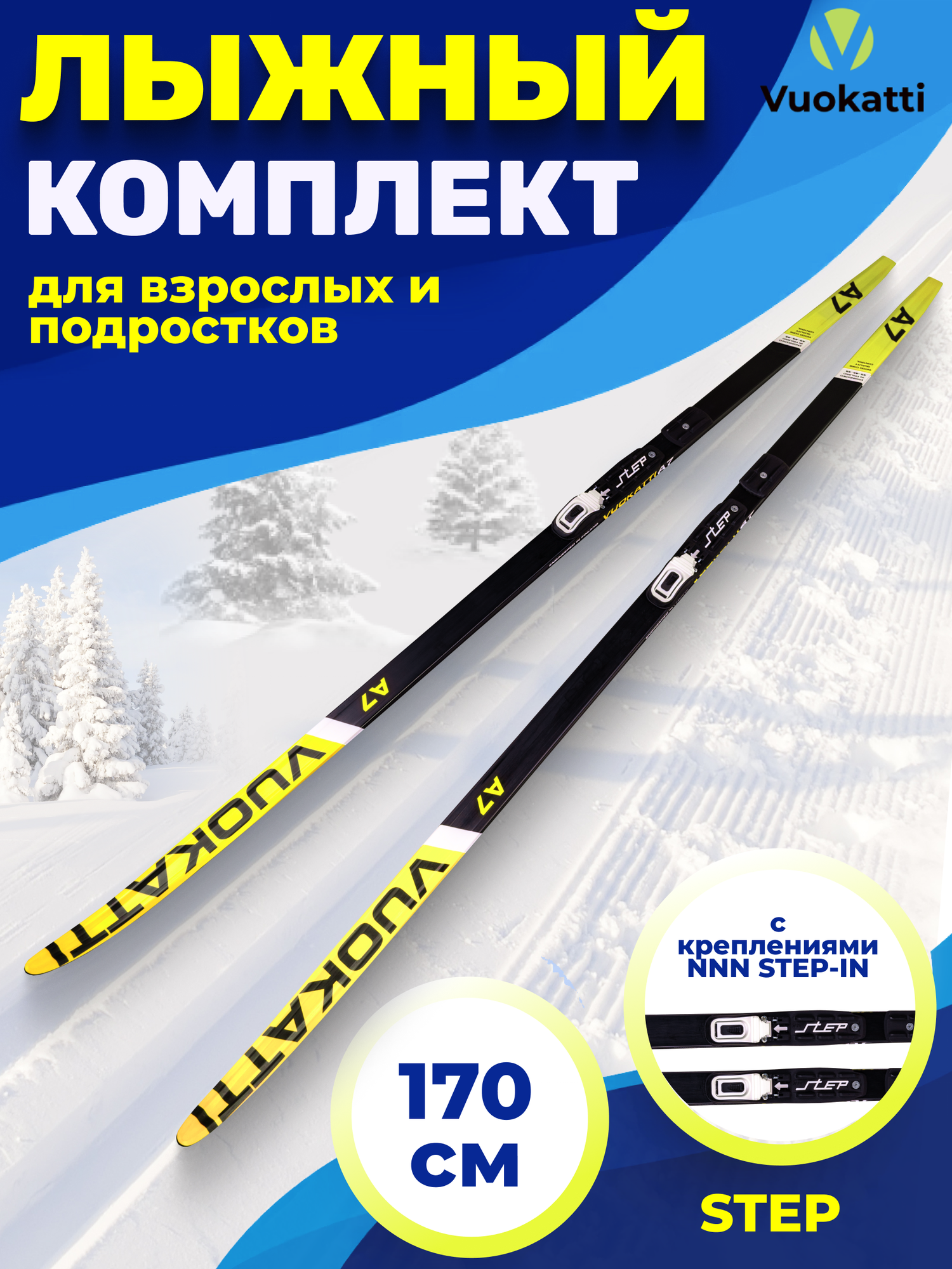 Купить Беговые лыжи VUOKATTI 170 см с креплением NNN Step-in (Step) Black Yellow без палок