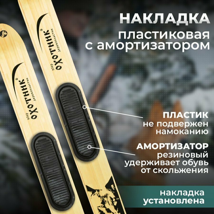Купить Лыжи охотничьи Маяк охотник 155х15 см дерево-пластик с пластиковой накладкой и амортизатором