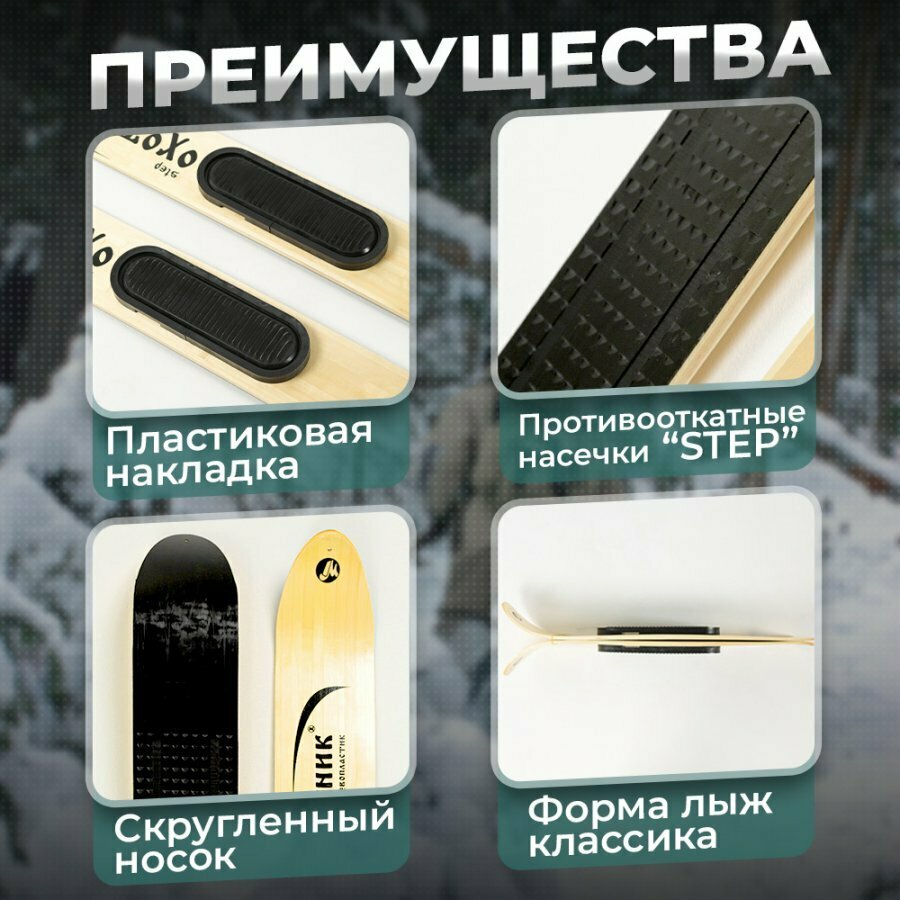 СохранитьЛыжи охотничьи Маяк охотник 155х15 см дерево-пластик с пластиковой накладкой и амортизатором интересное:
