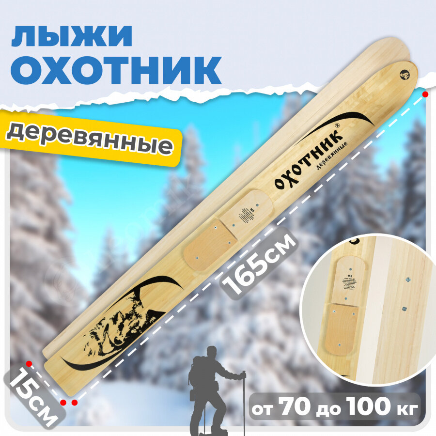 Лыжи охотничьи деревянные Маяк охотник 155 х 15 см с деревянными накладками