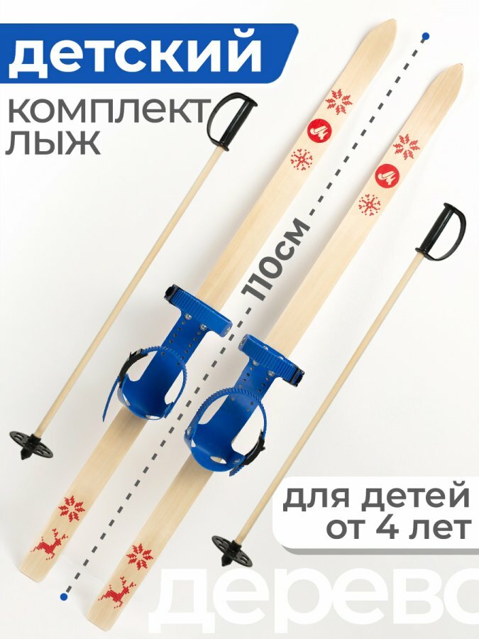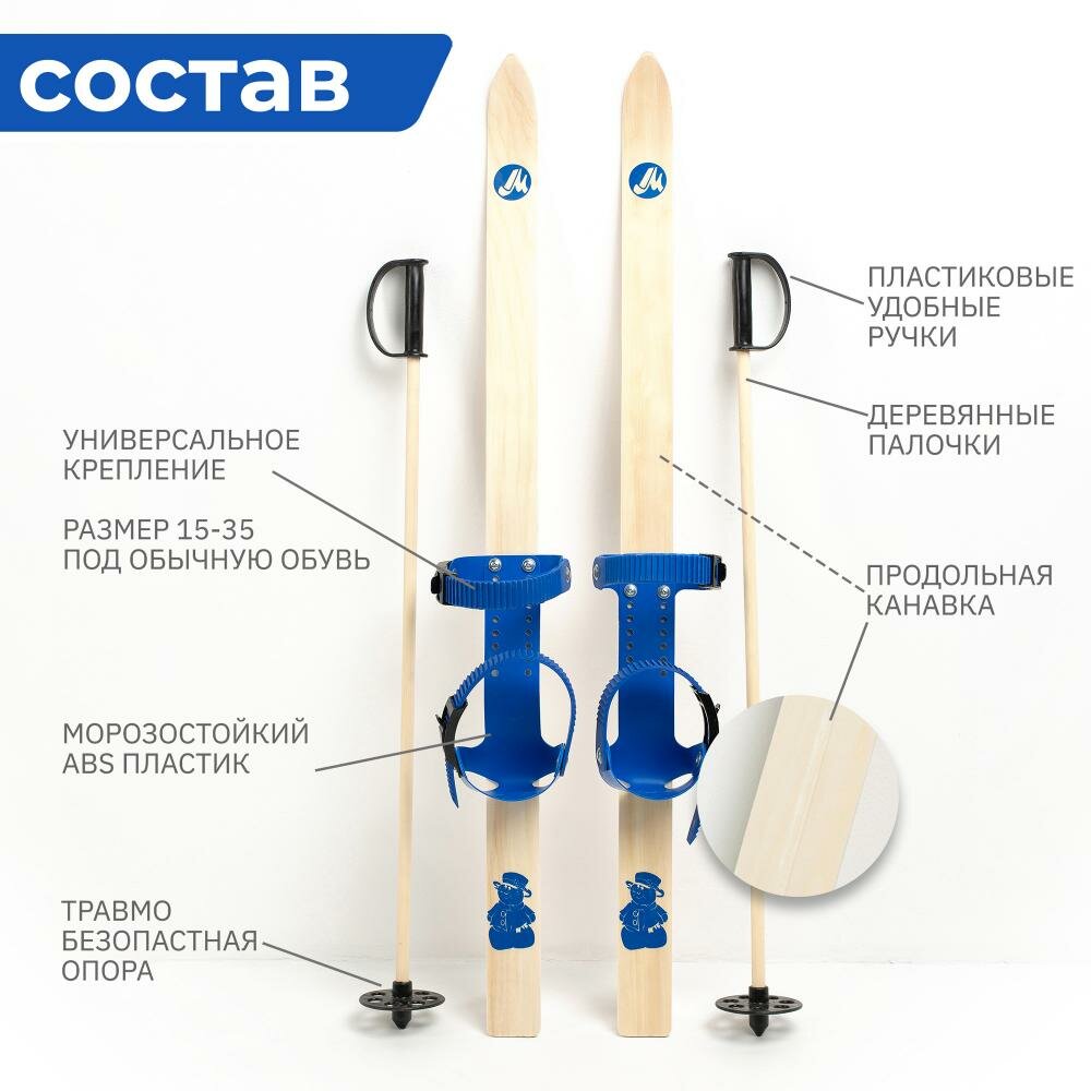 Купить Лыжи детские 110 см Маяк Junior комплект с креплением и палками для детей от 5 лет дерево, синий