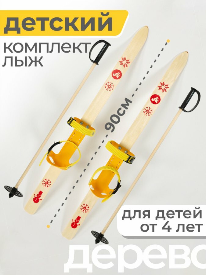 Купить Лыжи детские 90 см Маяк Junior комплект с креплением и палками для детей от 3 лет дерево, желтый