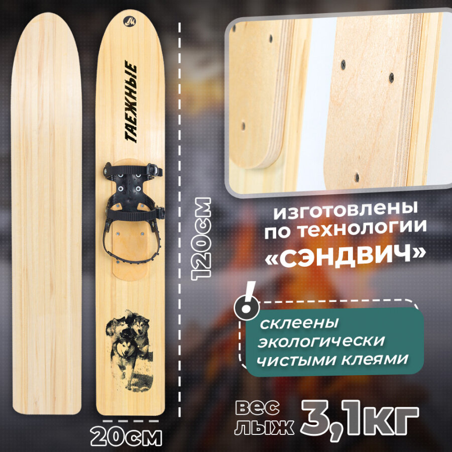 Лыжи охотничьи деревянные Маяк таежные 120 х 20 см с полужестким креплением