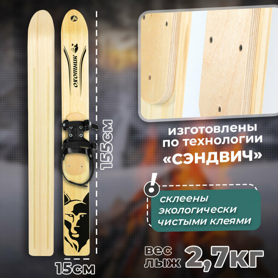 Лыжи охотничьи деревянные Маяк охотник 155 х 15 см с полужестким креплением