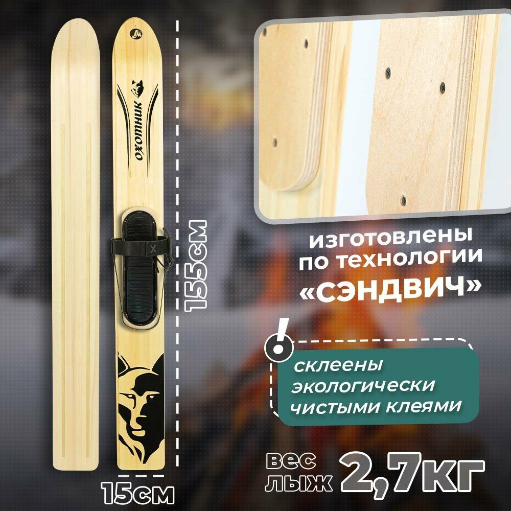 Лыжи охотничьи Маяк охотник 155х15 см деревянные с креплением кожа с пяткой интересное: