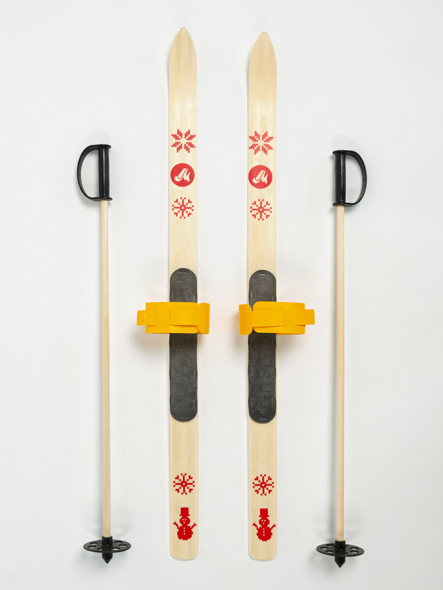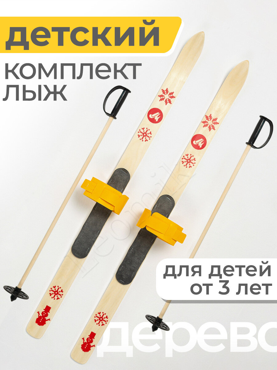 СохранитьЛыжи детские BABY 100 см с креплениями и палками деревянные желтые интересное: