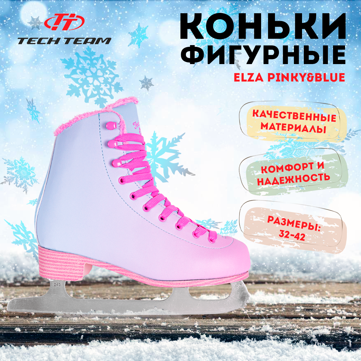Коньки фигурные TECH TEAM Elza pinky&blue р.42
