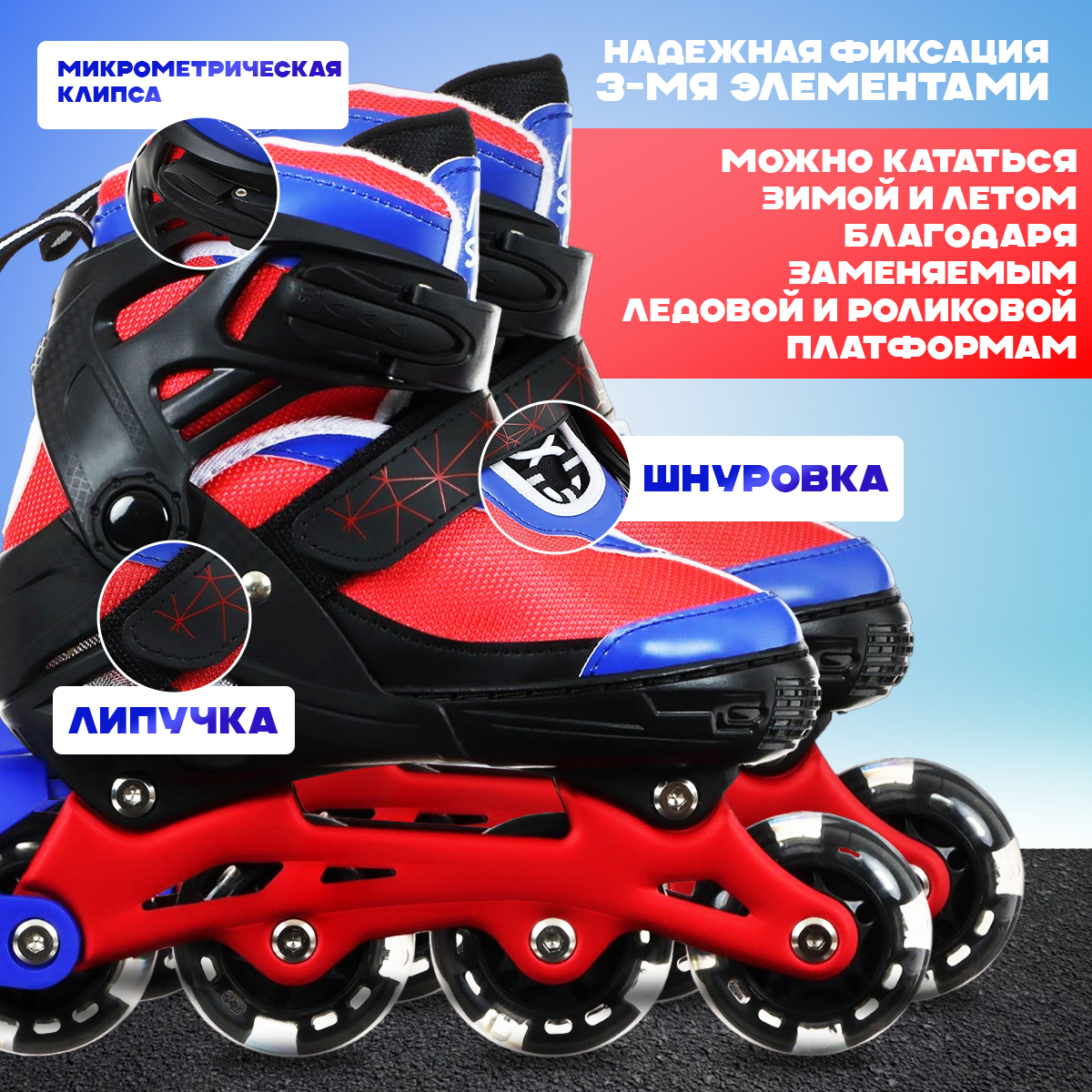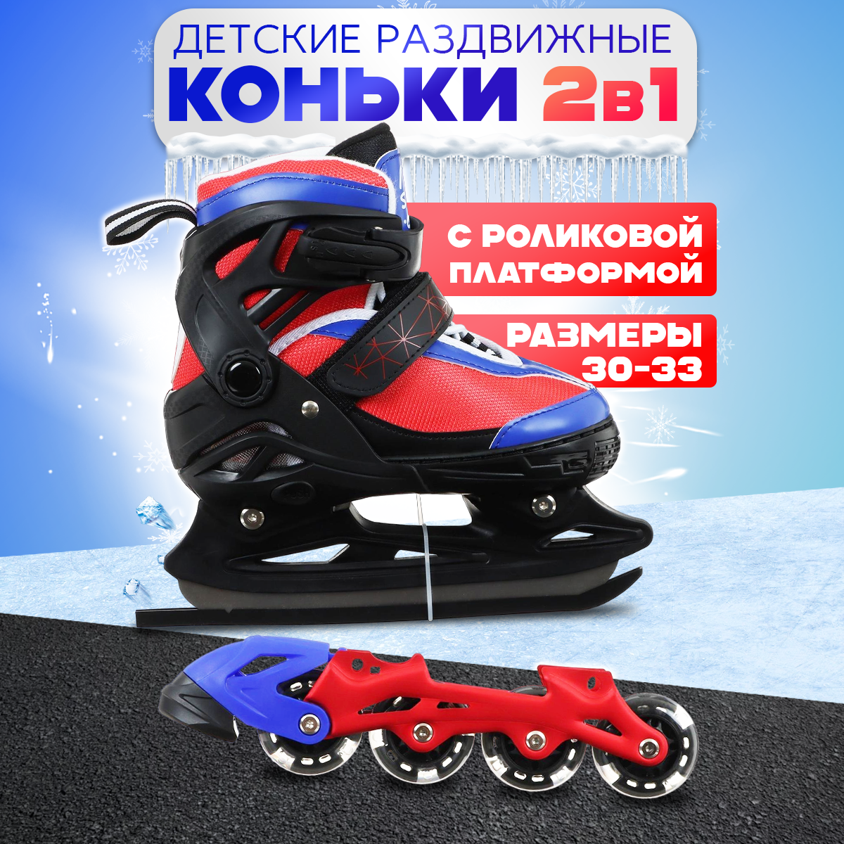 Купить Коньки детские для мальчика раздвижные, с роликовой платформой, р. 30-33
