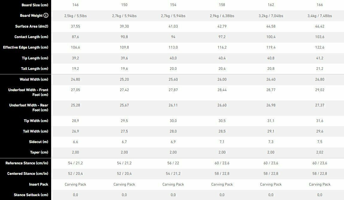| Дополнительная информация | 3D contours base 3.0 - фрирайдный профиль, на 7 мм подняты канты в зоне носа и на 7 мм в зоне хвоста, скругление начинается на уровне появления рокера |