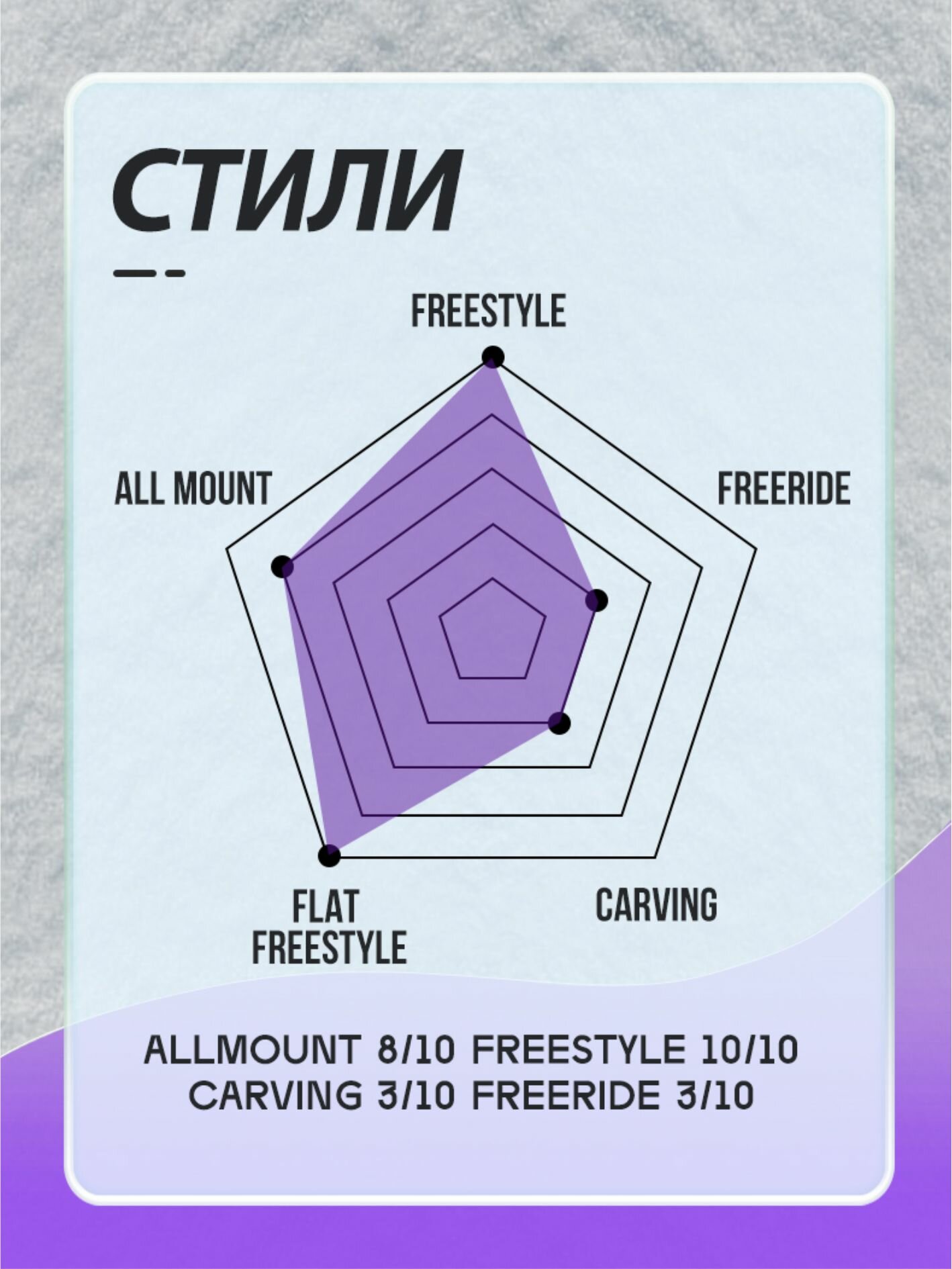 | Стиль катания | универсальный / фрирайд / фристайл |