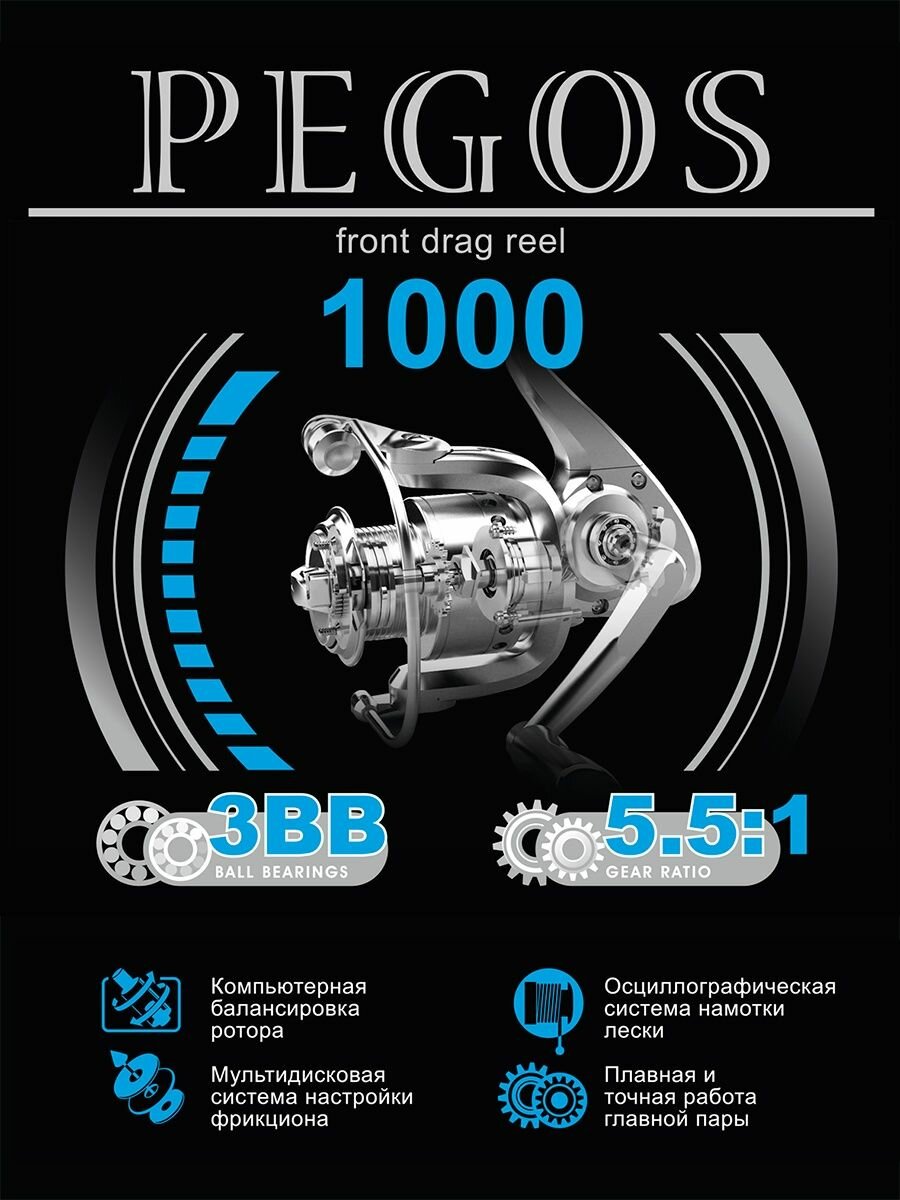 Катушка для рыбалки безынерционная Pegos 1000 (2BB)