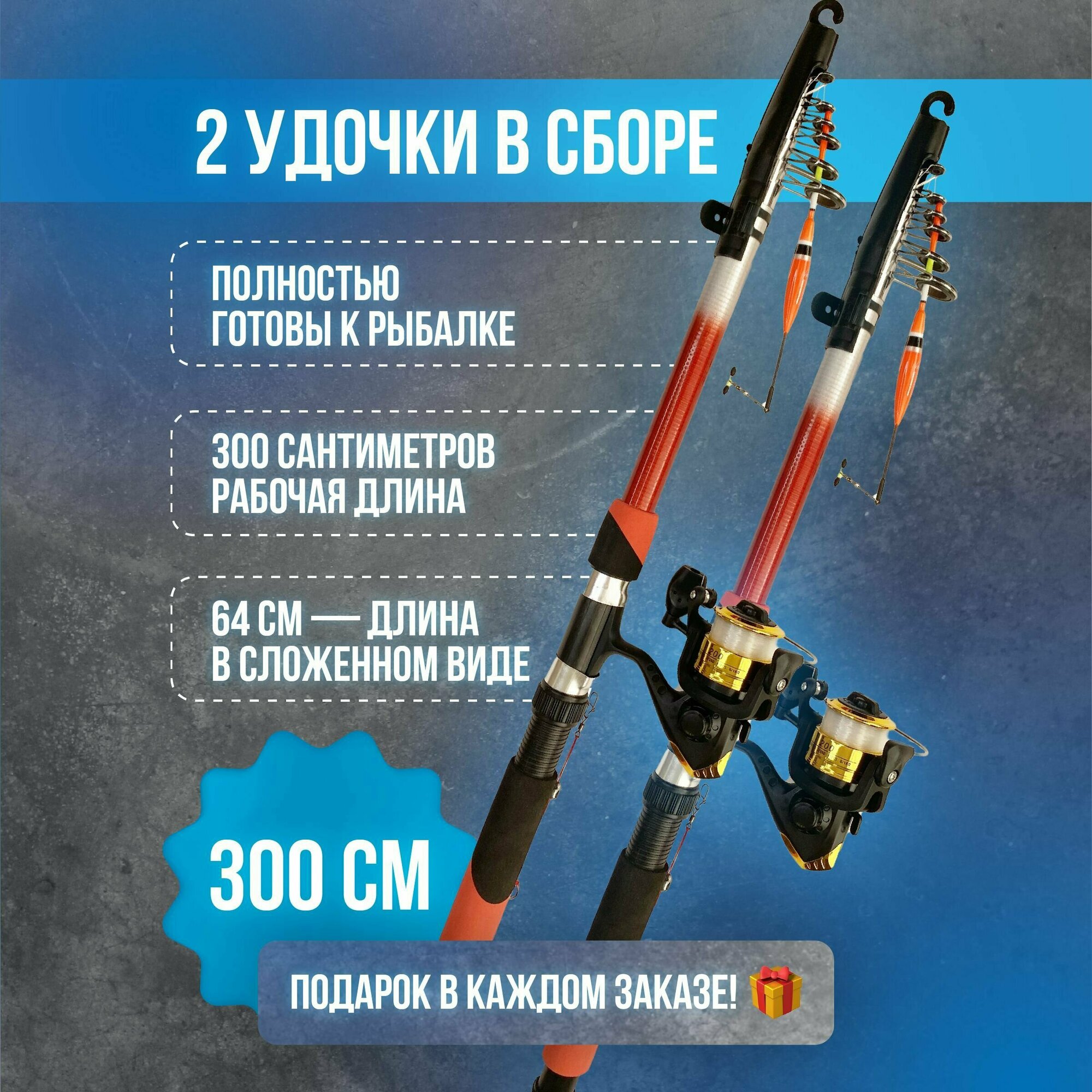 Купить Фидерное удилище с катушкой телескопическое для рыбалки в сборе 300 см, 2 шт