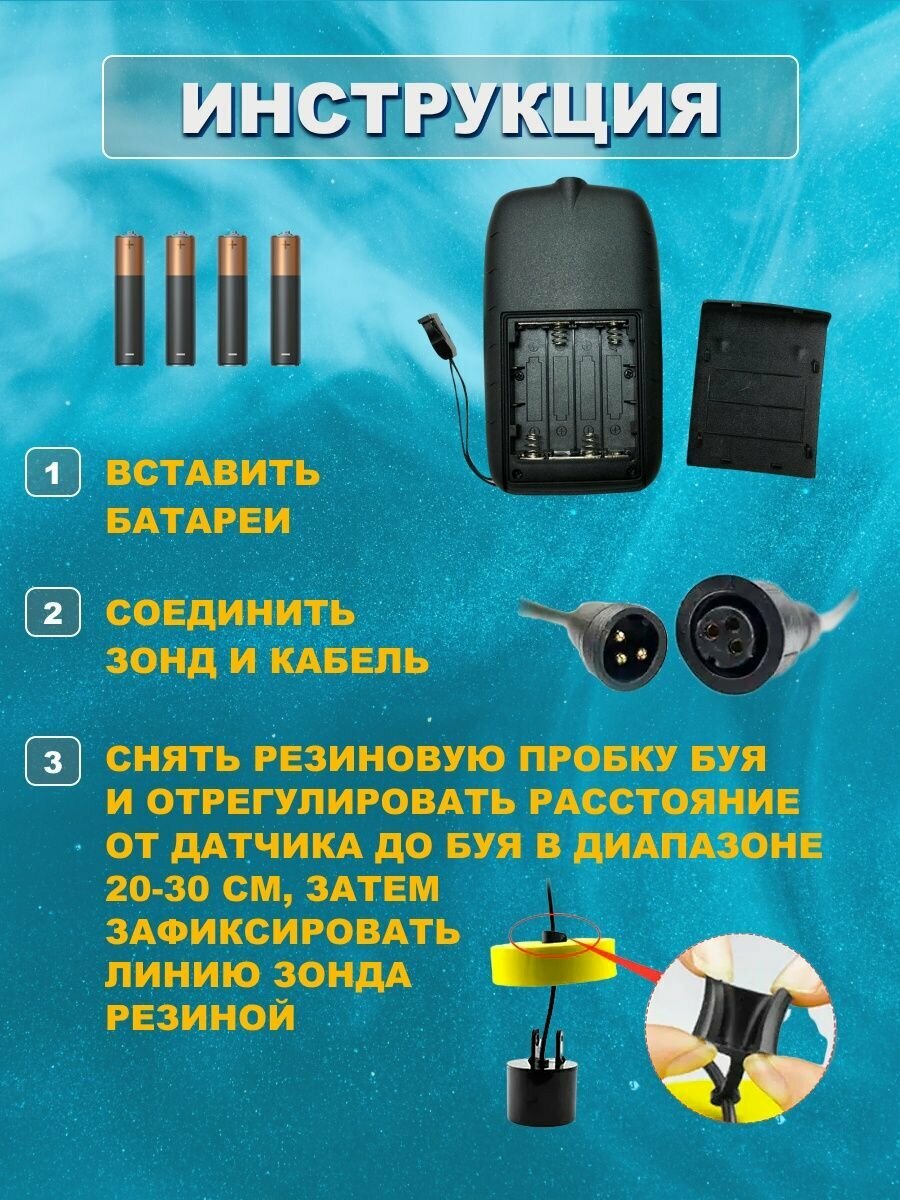 | Дополнительная информация | длина кабеля трансдьюсера/камеры: 10 м; количество и тип батареек: 4xAAA; подробная комплектация: Эхолот, датчик преобразователя длиной 7.5м, адаптер преобразователя, крепление датчика, ремешок на шею, гайка из нержавеющей стали, руководство пользователя.; глубина: 100000 мм |