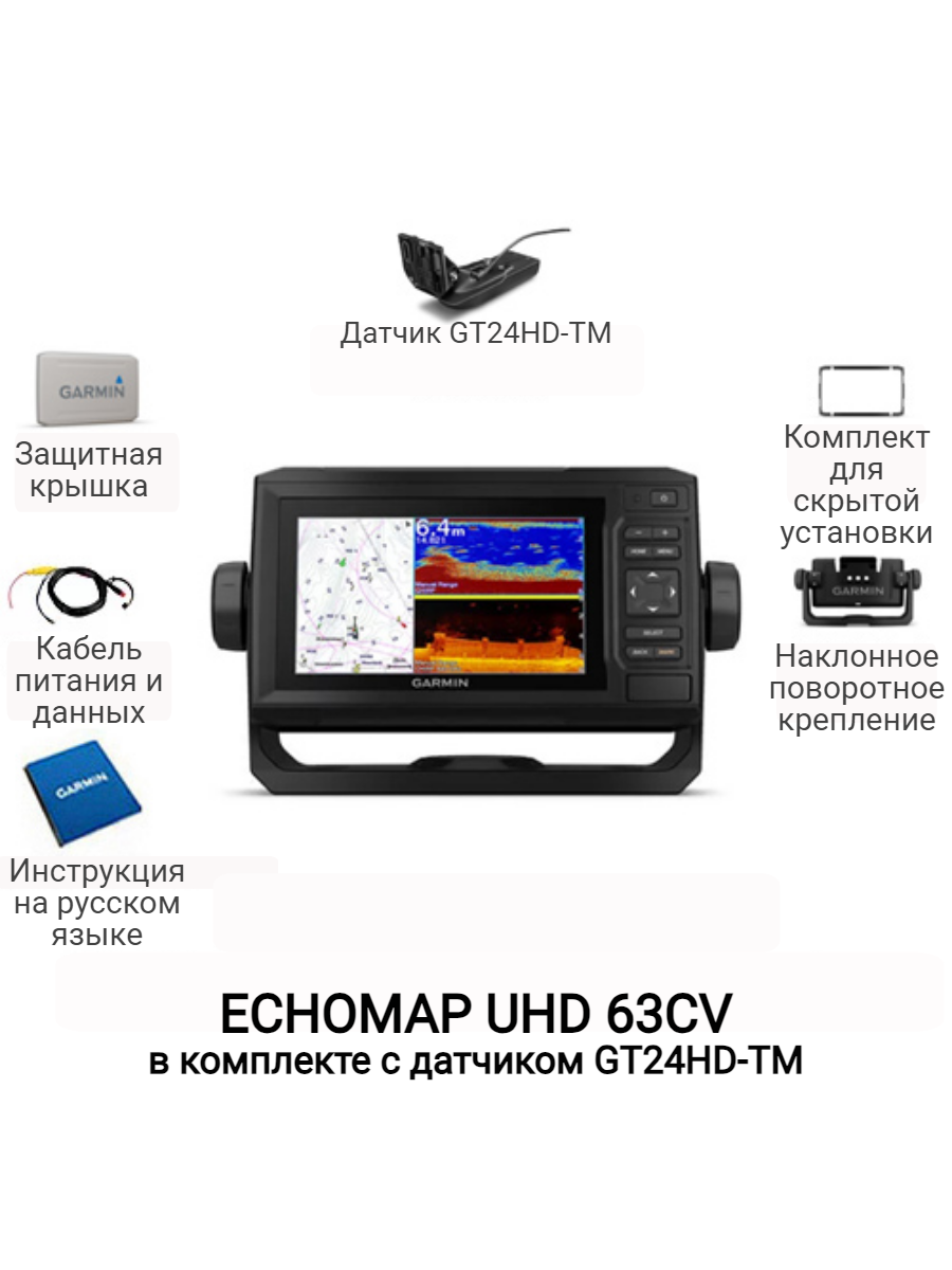 Купить Garmin Echomap UHD 63CV с датчиком GT-24