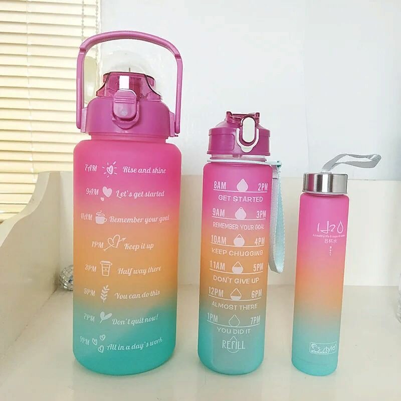 Купить Комплект спортивных бутылок с маркерами времени для мотивации розовые/ спортпит/ фитнес