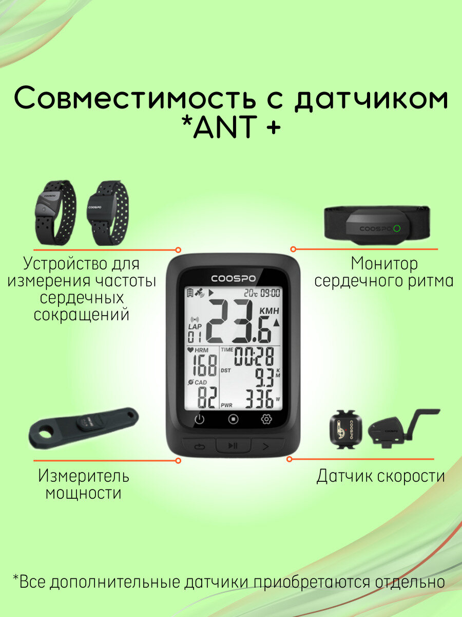 Беспроводной Bluetooth велосипедный GPS компьютер CooSpo BC 107 дисплей 2.4 дюйма интересное: