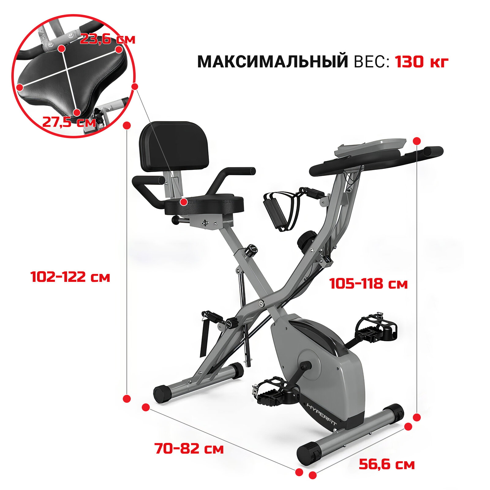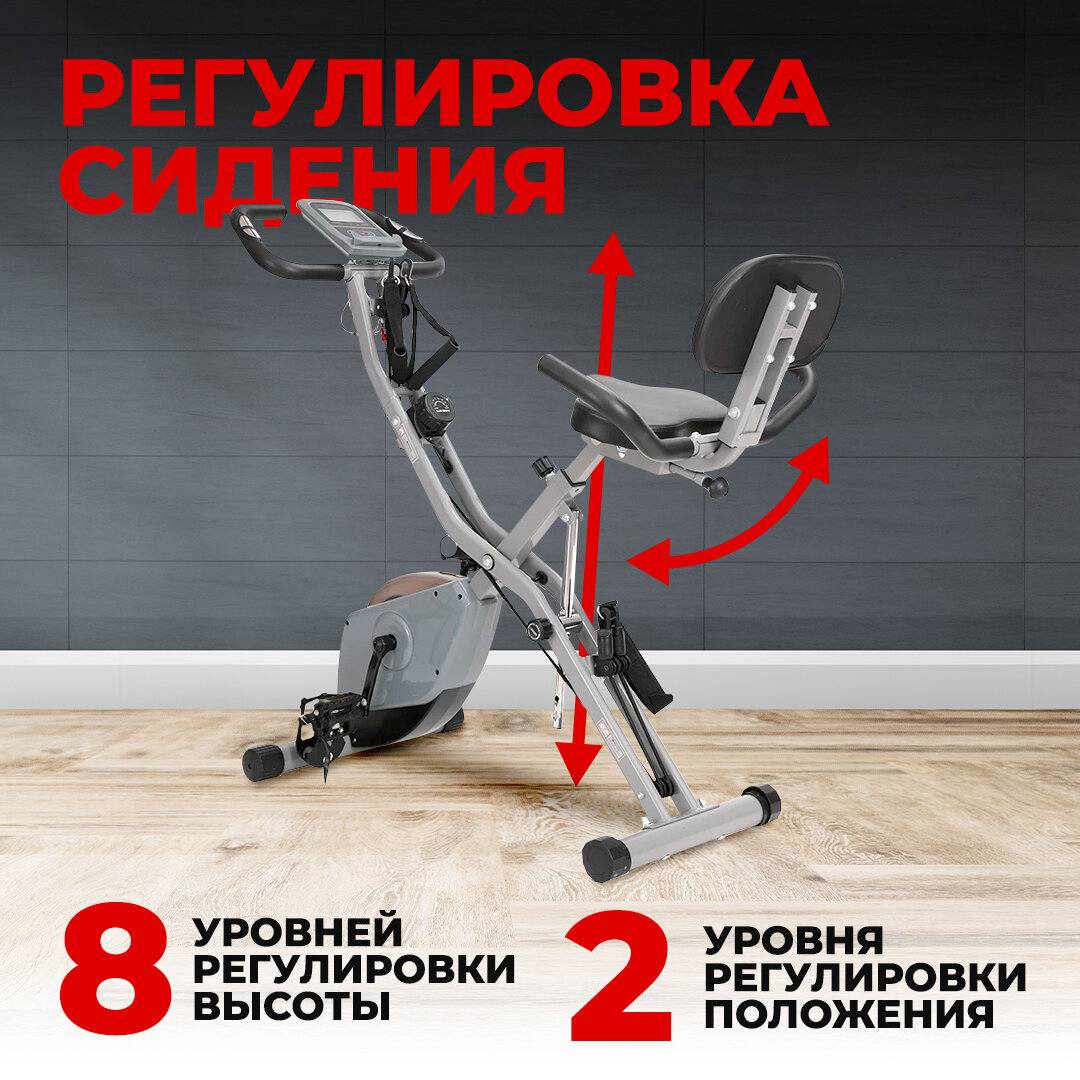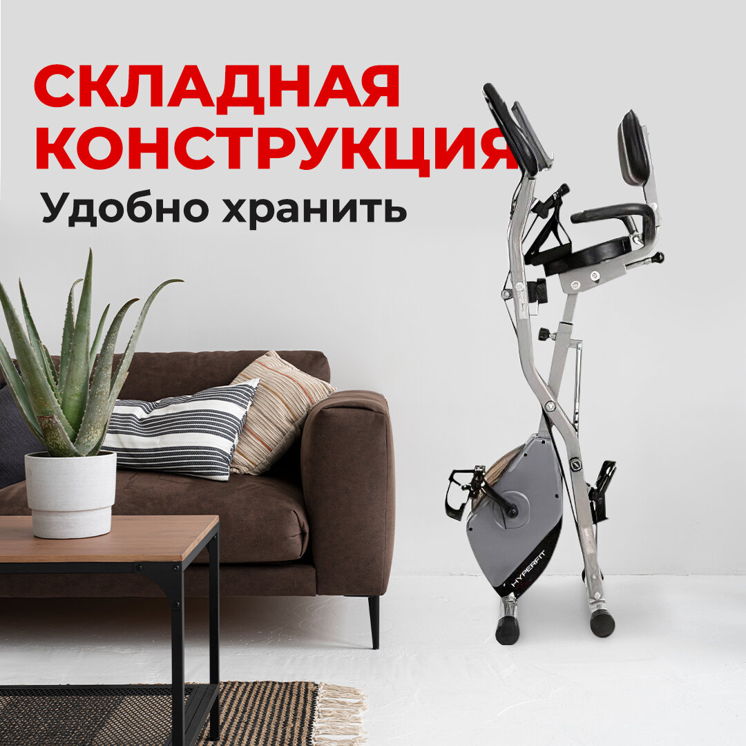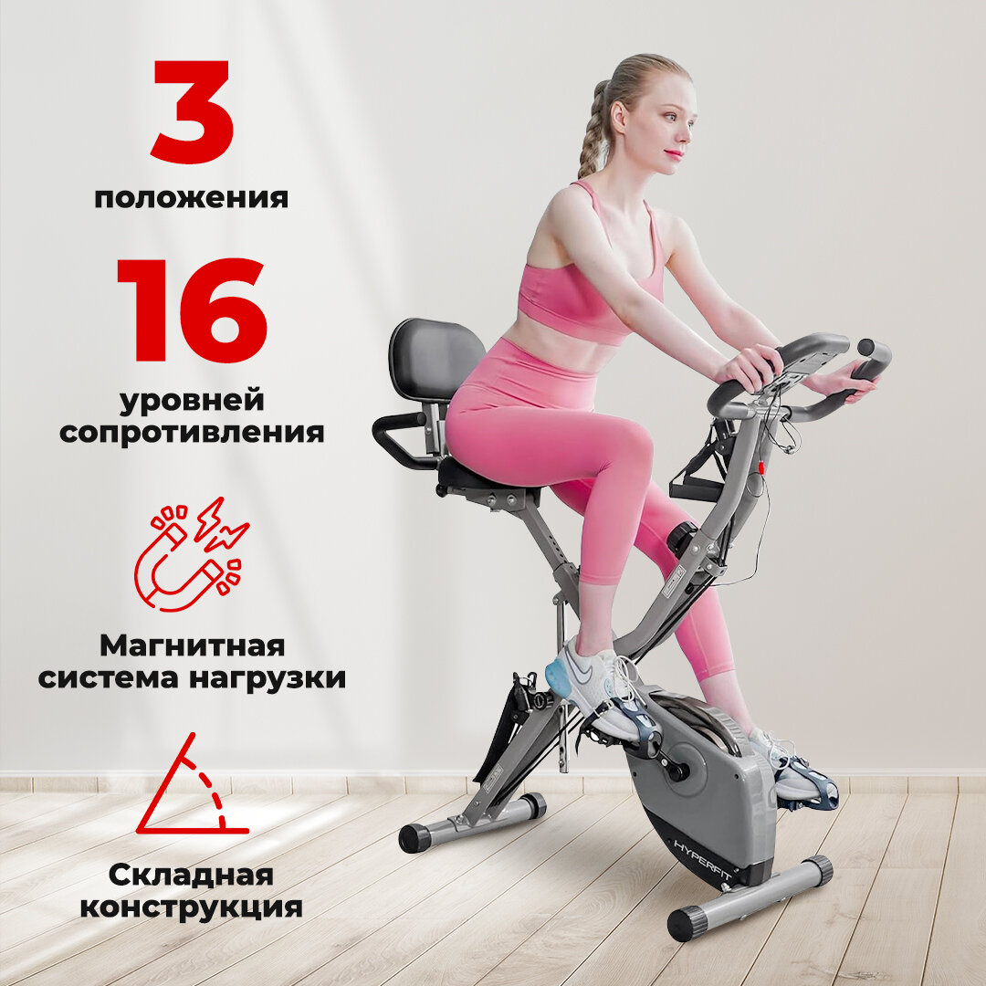 Велотренажер с магнитной системой нагрузки, 16 уровней сопротивления/ X-байк для дома и зала/ кардиотренажер для тела/ тренажер для рук, ног с эспандерами/ складной HYPERFIT Krummung X-70
