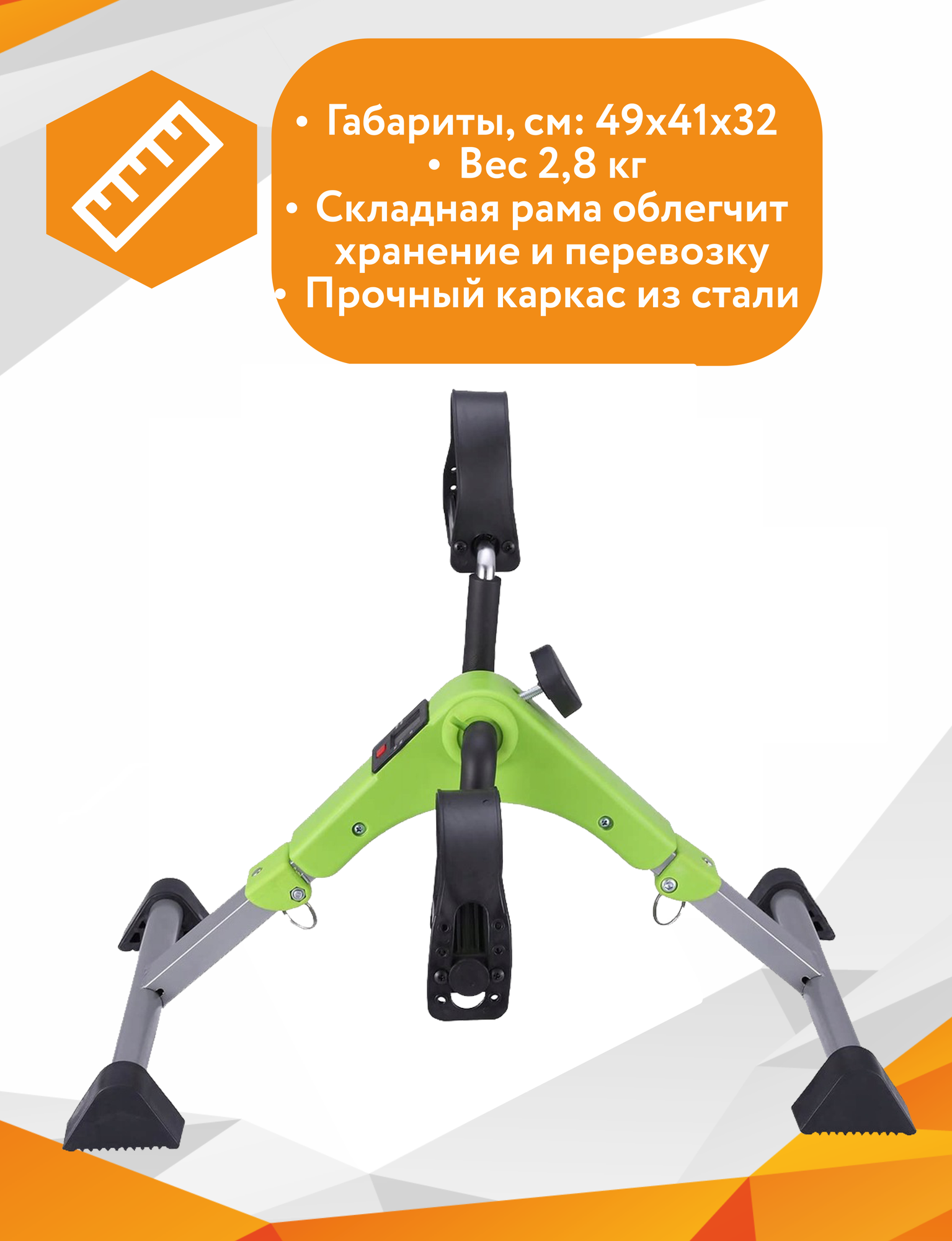 Велотренажер складной с электронным дисплеем, велотренажер для рук и ног в период реабилитации BALMY Mini, зелёный интересное: