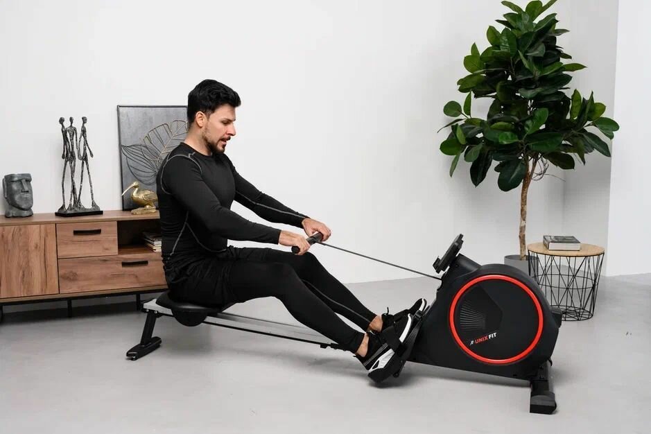 Гребной тренажер UNIXFIT Techno Rower 410 магнитный _вертикальное хранение _до 130 кг. интересное: