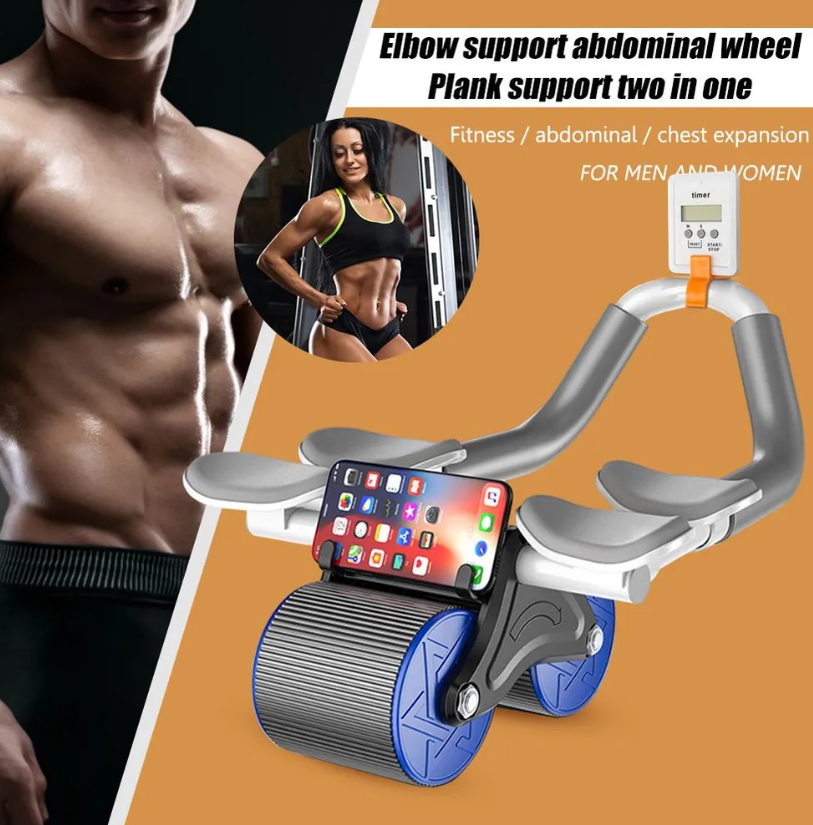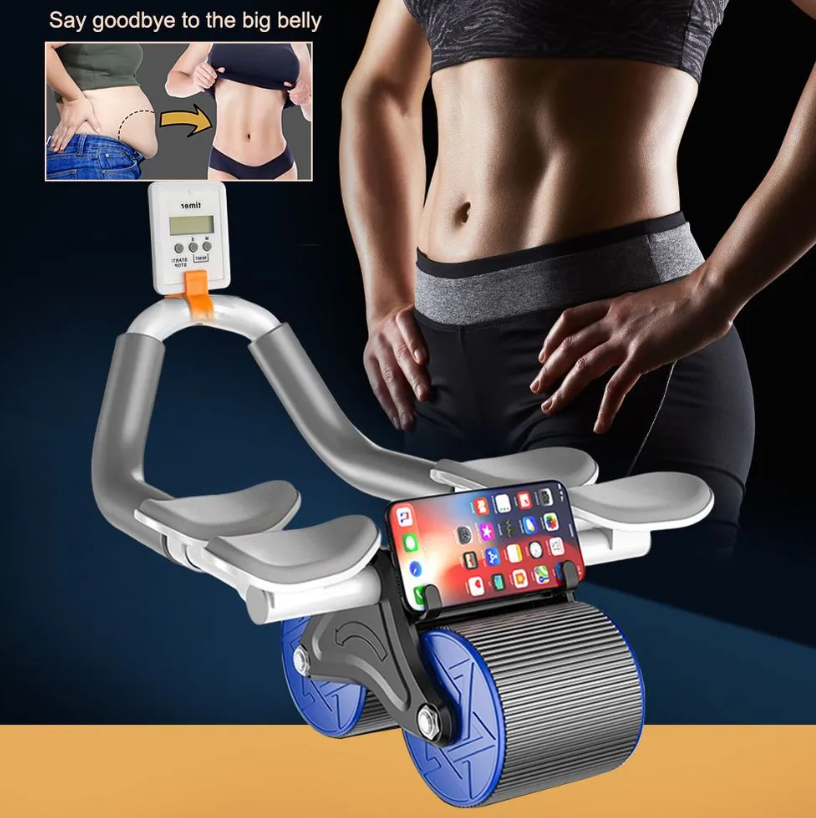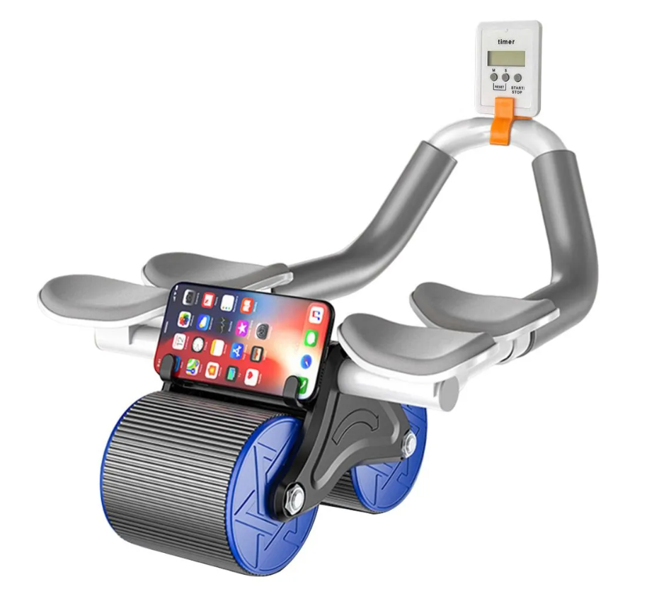 Ролик для пресса с обратным механизмом синий/ Тренажер для пресса и спины с обратным механизмом интересное: