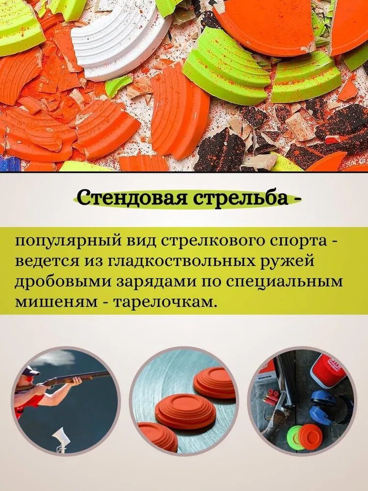 | Дополнительная информация | Стендовая стрельба — популярный вид стрелкового спорта — ведется из гладкоствольных ружей дробовыми зарядами по специальным мишеням-тарелочкам. В продаже также имеются метательные машинки различных серий. |