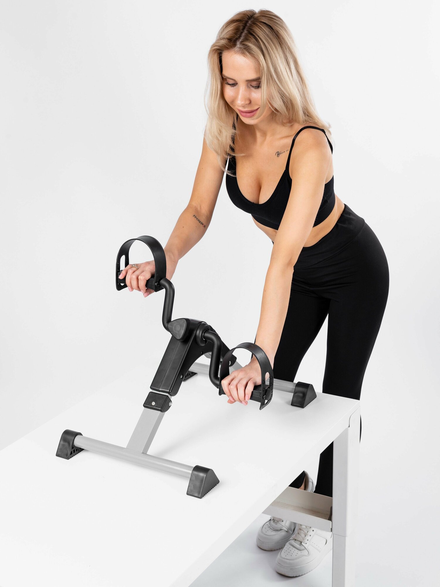 Купить Портативный педальный тренажер для рук и ног с цифровым дисплеем, тренажер для реабилитации; черный