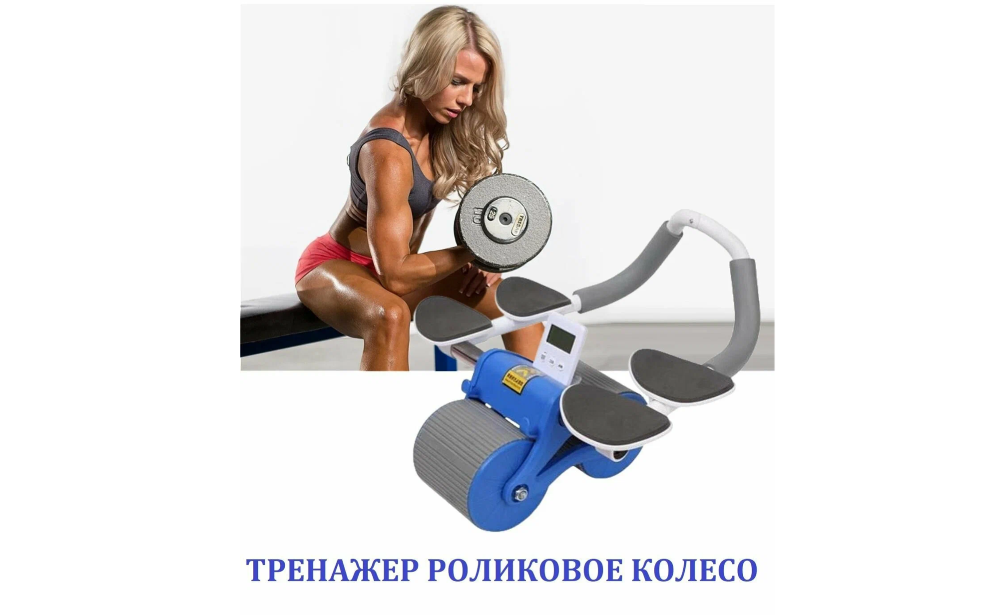 Роликовое колесо для рук и плеч с коленным ковриком и таймером / Тренажер для брюшного пресса с автоматическим отскоком синий интересное: