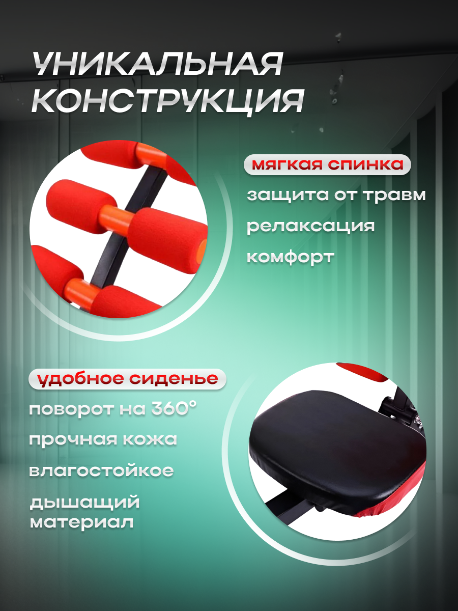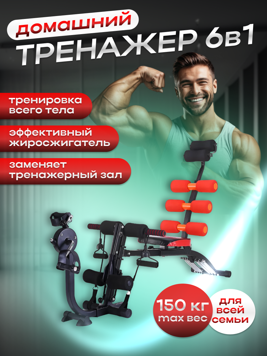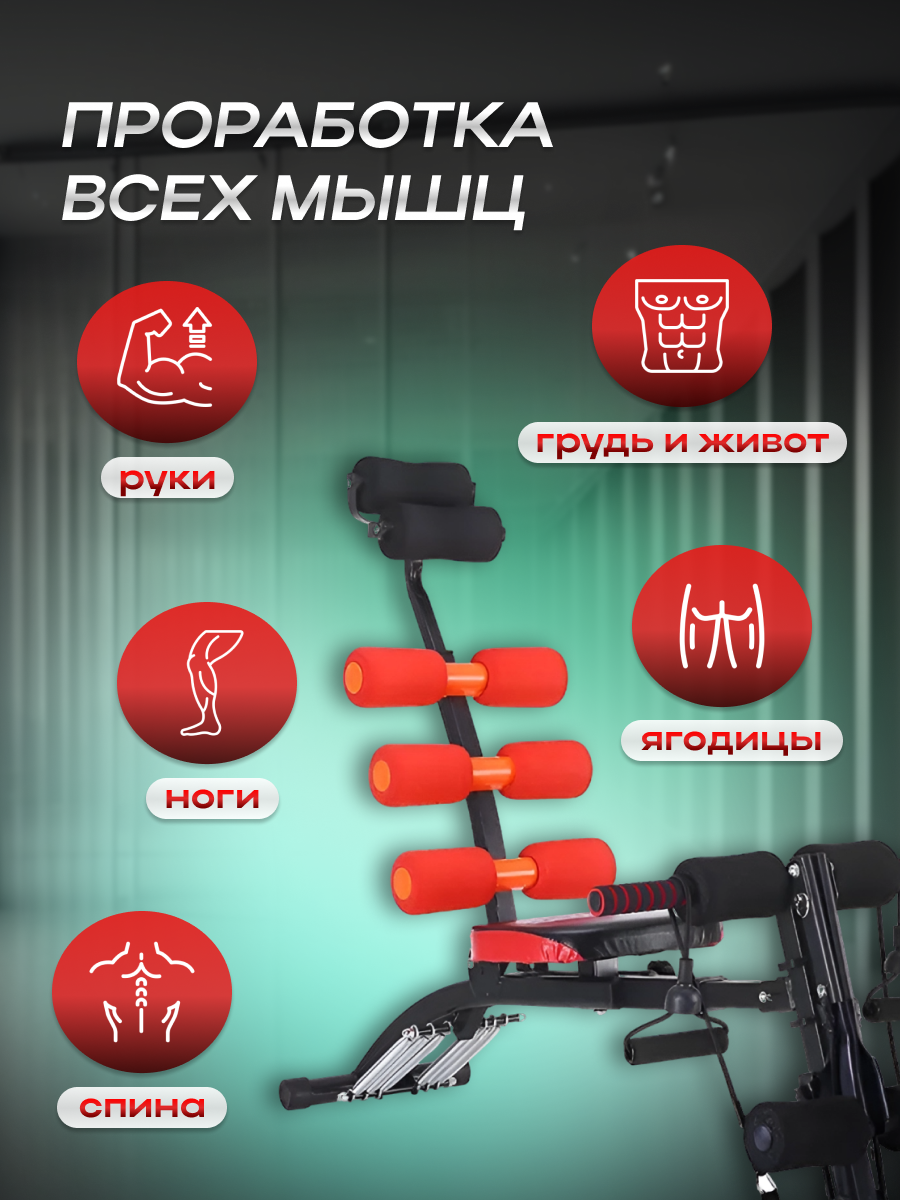 Многофункциональный домашний тренажер 6в1. Скамья для пресса, степпер, велосипед, эспандеры, отжимания, жим / Красный интересное: