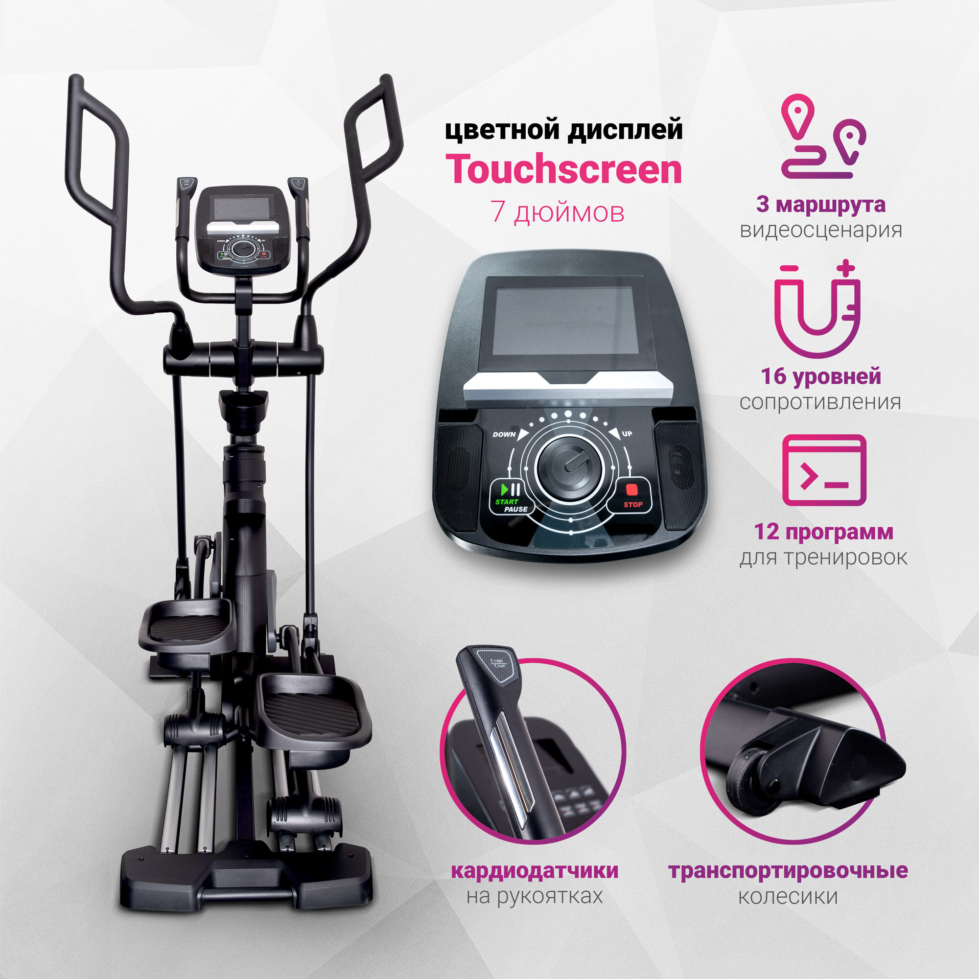 Эллиптический тренажер HyperFit Reisender U13W/3 в 1/Велотренажер/Степпет/Для дома/Для тренировок/Маховик 7 кг/магнитный