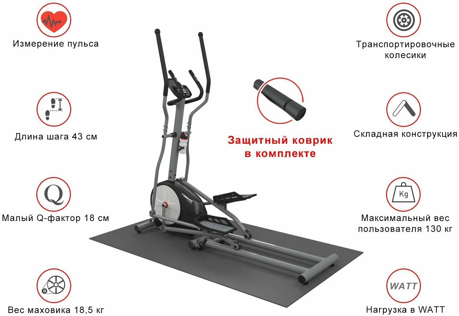 Эллиптический тренажер UNIXFIT SL-430E grey электромагнитный / коврик В подарок / до 130 кг интересное: