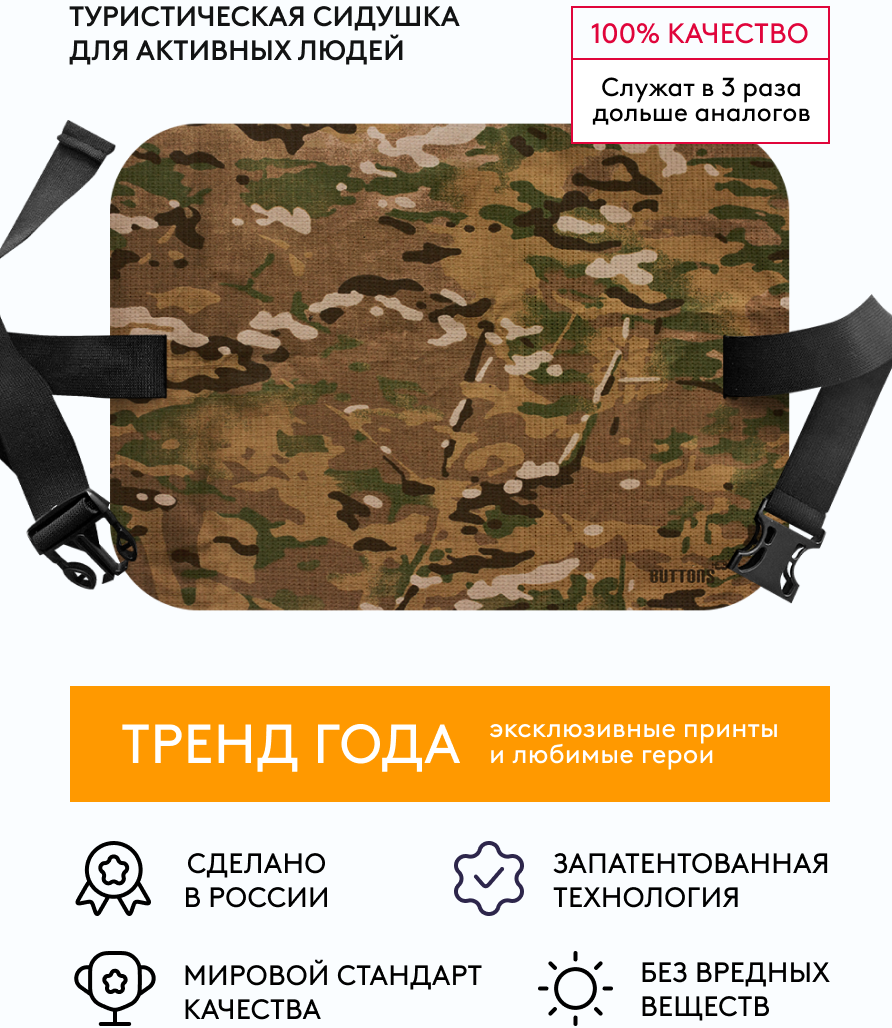 Поджопник для военных и туристов "Buttons" сидушка туристическая дубок интересное: