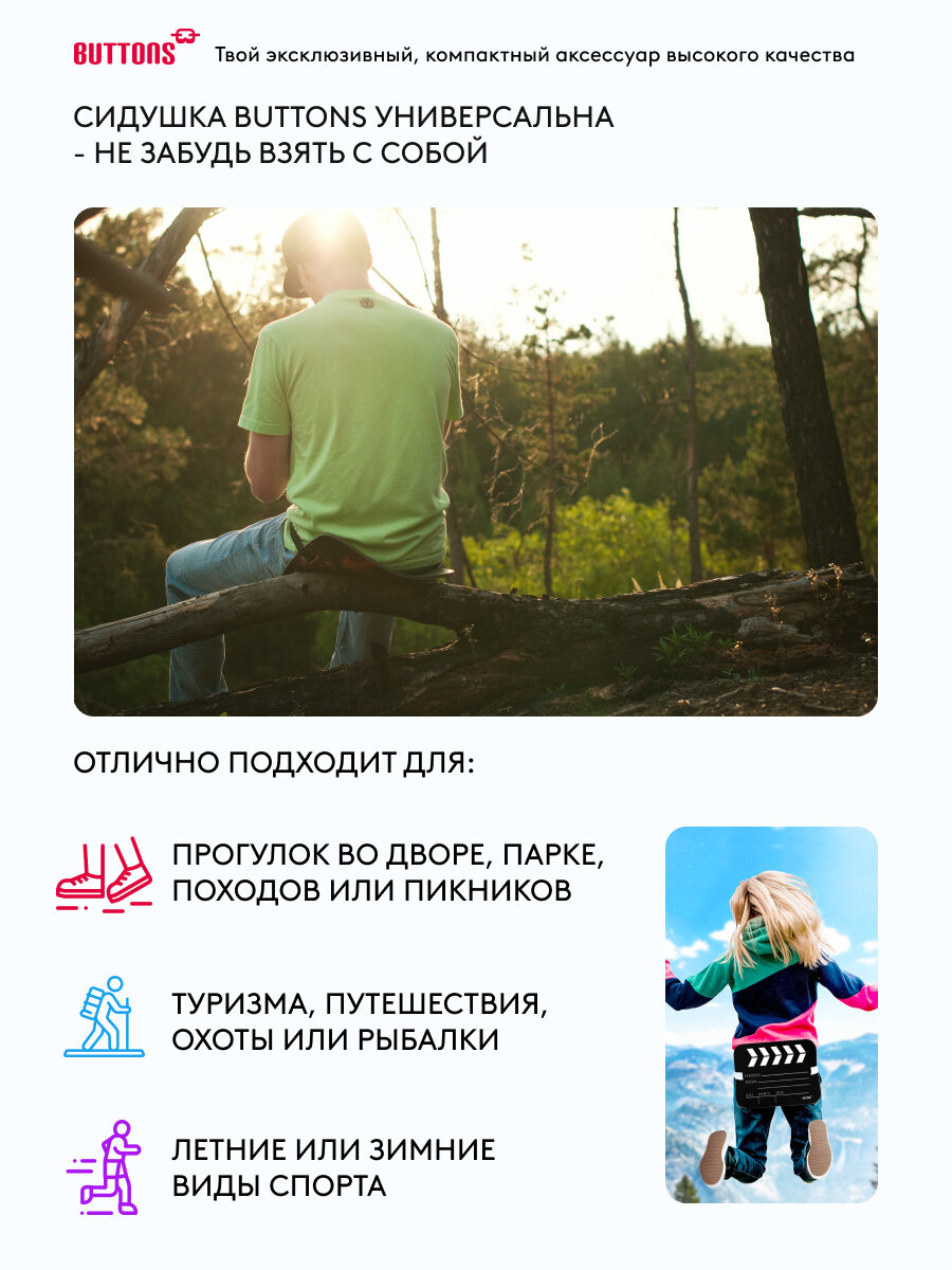 Сидушка туристическая под попу Buttons, походная прямоугольная хоба с рисунком кинохлопушка интересное: