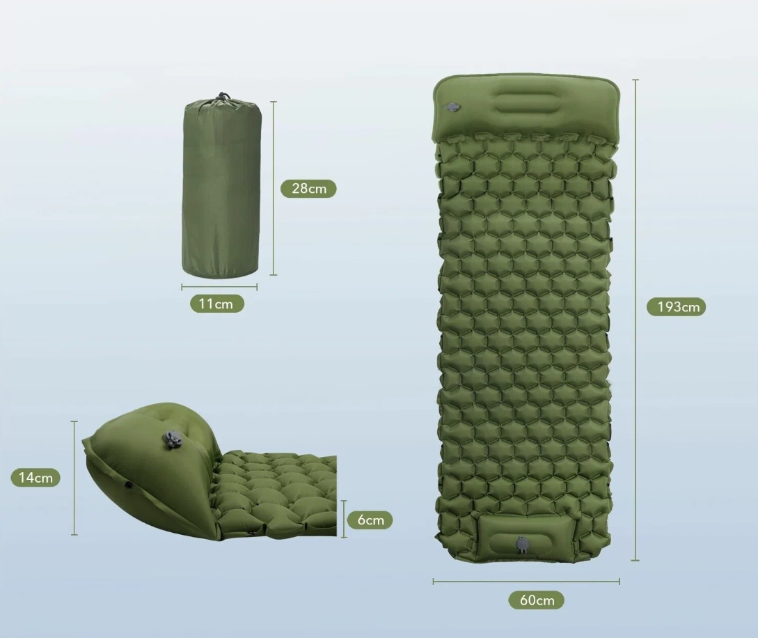 Купить Коврик туристический самонадувающийся с подушкой и встроенным насосом, зеленый
