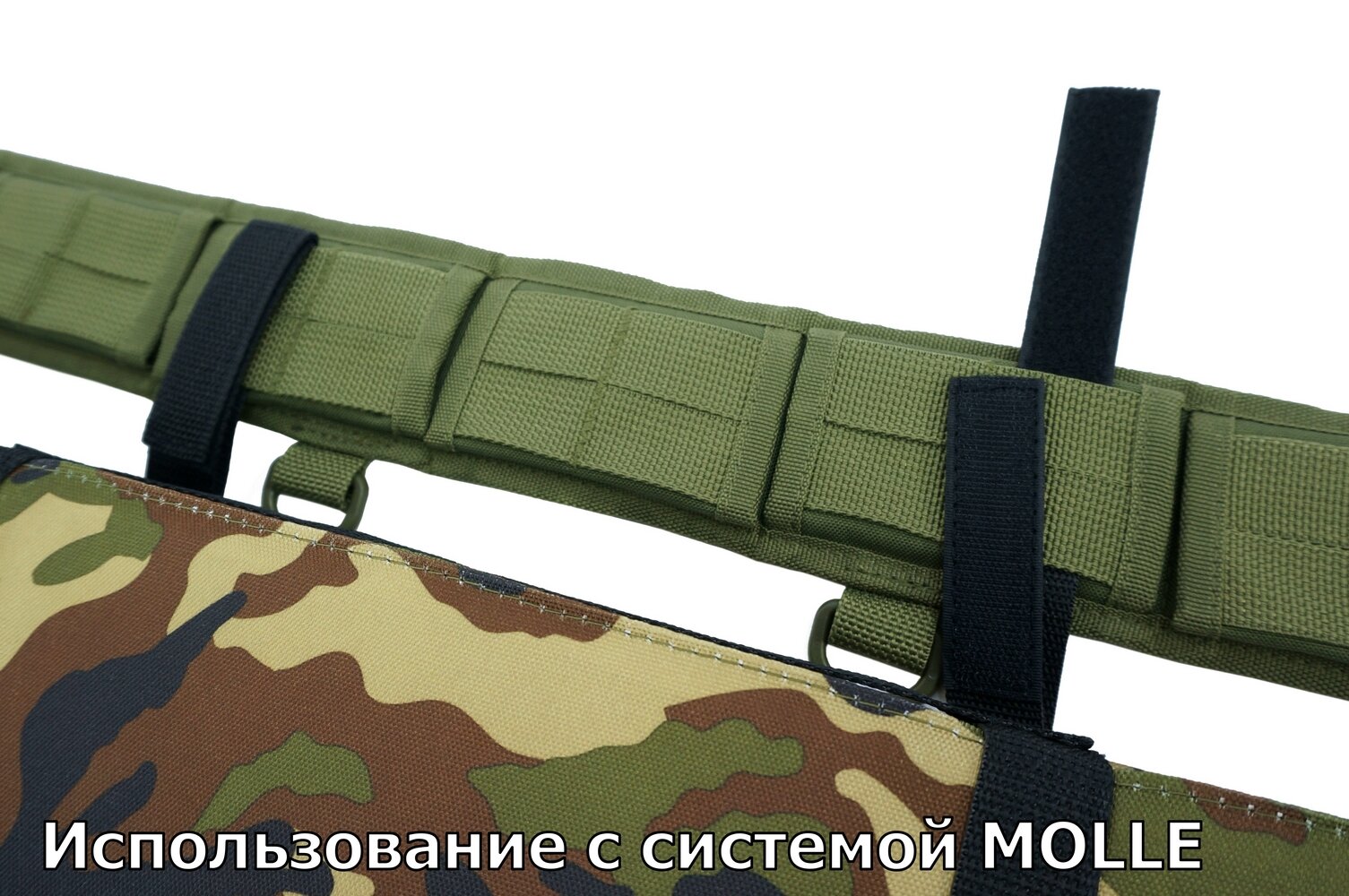 | Дополнительная информация | возможность использования с ремнем или системой MOLLE; ручка для переноски; съемная стропа для переноски через плечо; жесткая фиксация в сложенном виде при помощи строп и фастексов из полиацеталя |