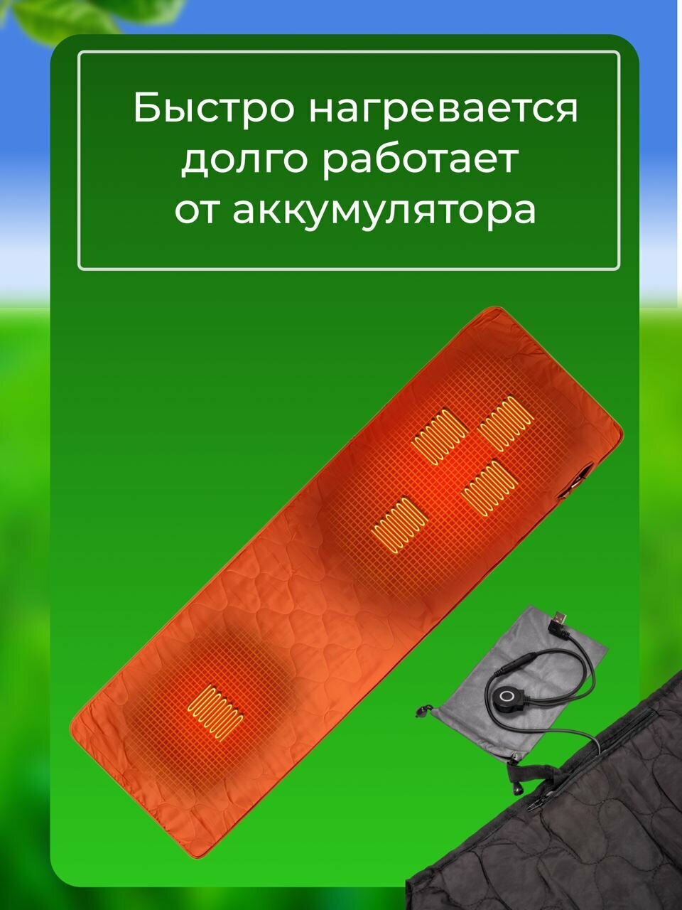 USB коврик с подогревом / Вкладыш для спального мешка / Электрический матрас оранжевый интересное: