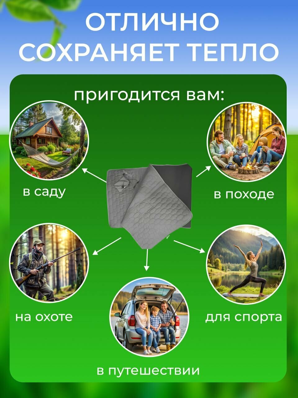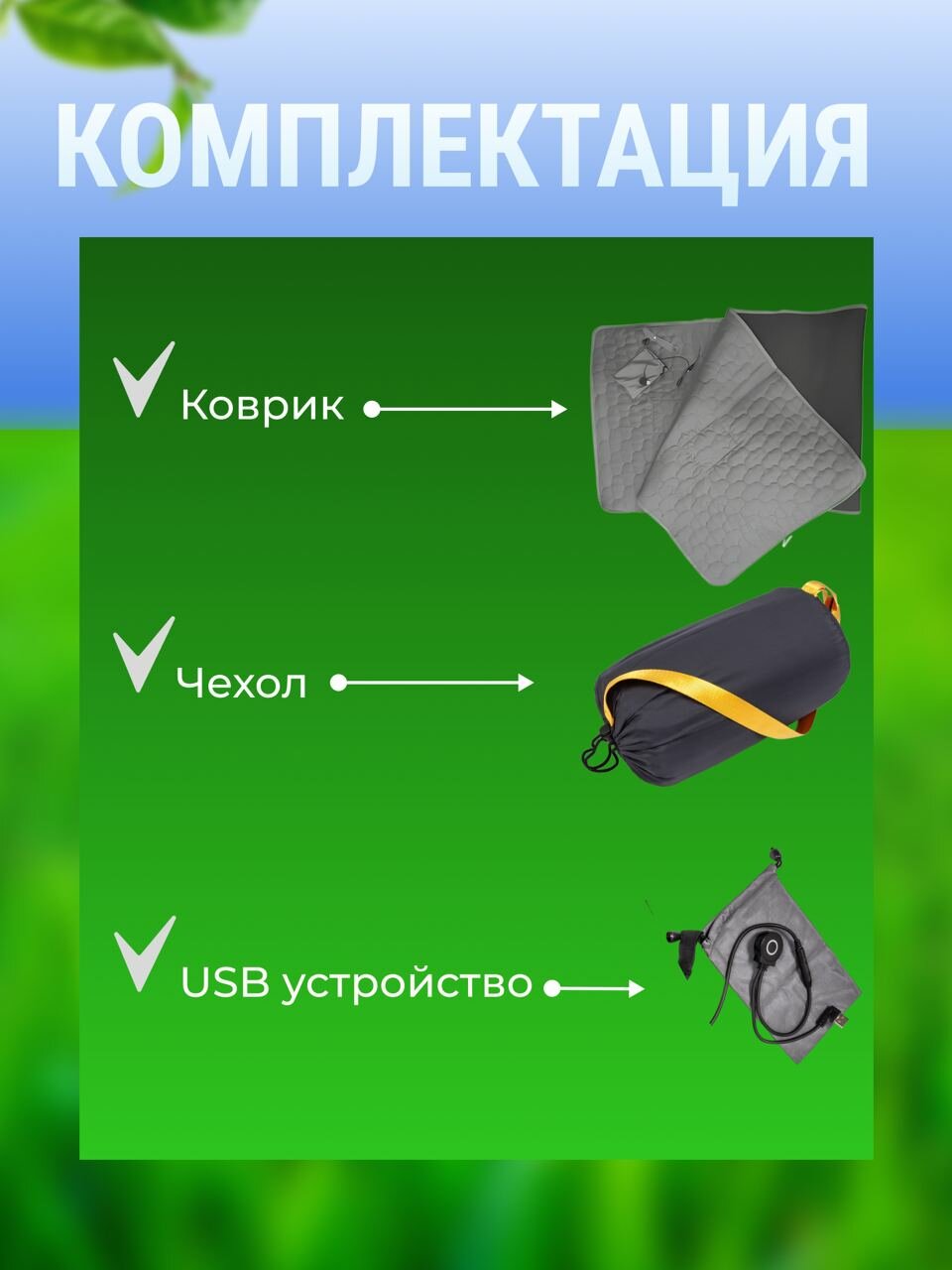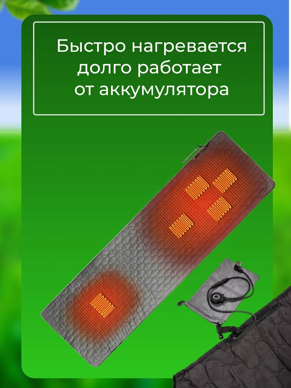 USB коврик с подогревом / Вкладыш для спального мешка / Электрический матрас серый интересное: