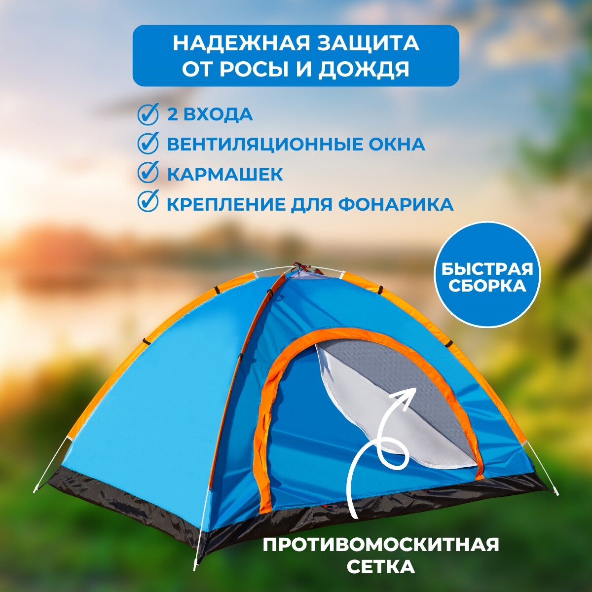 | Особенности | 1 комната / вентиляционные отверстия / внутренняя палатка / противомоскитная сетка |