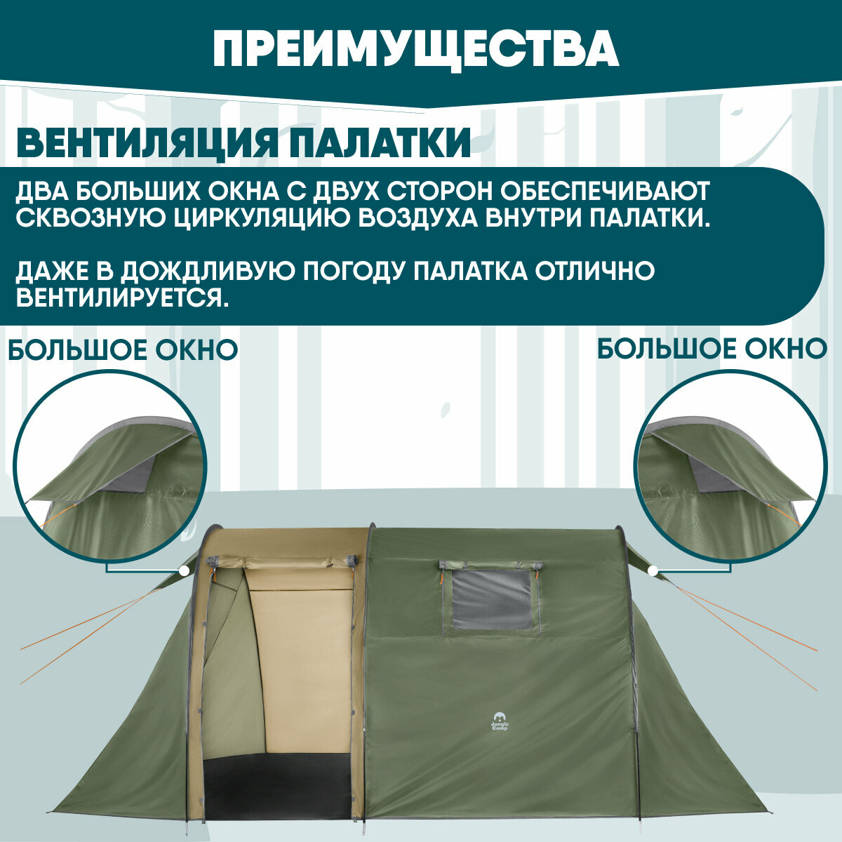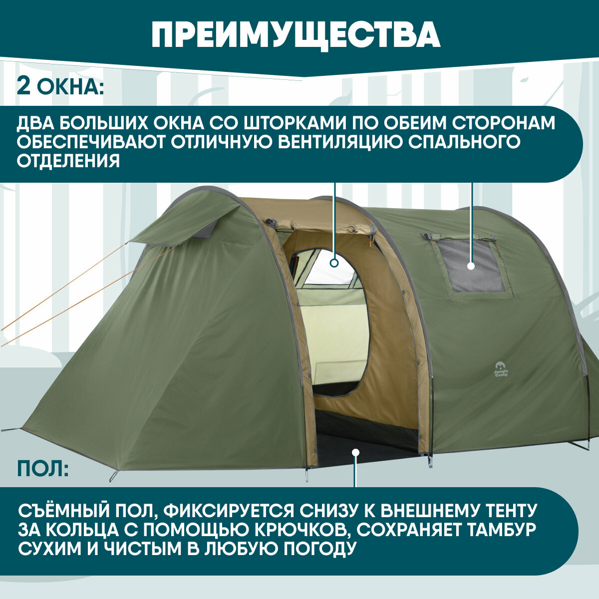 Палатка четырехместная JUNGLE CAMP Palermo 4, цвет: зеленый интересное: