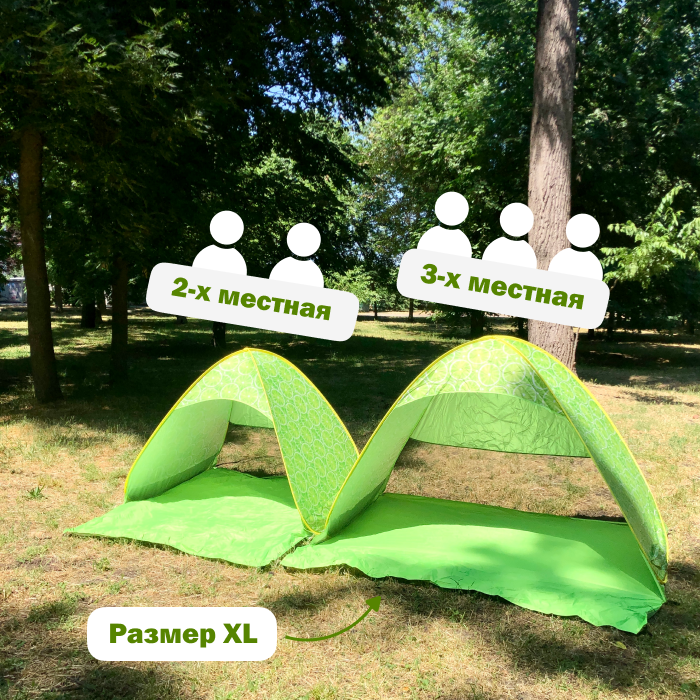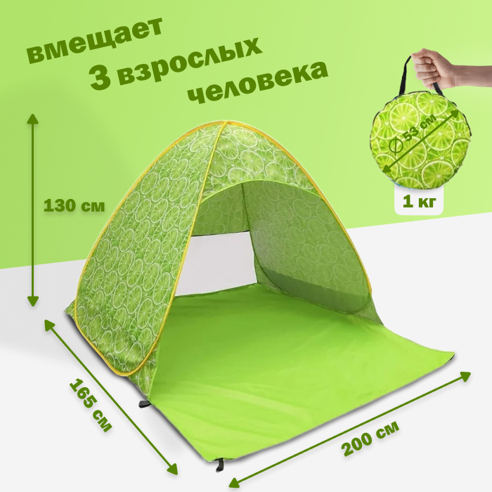 Палатка 3-местная пляжная автоматическая размер XL 200х165х130см / тент от солнца (не требует сборки) (Лайм) интересное: