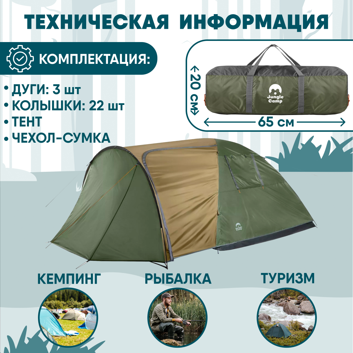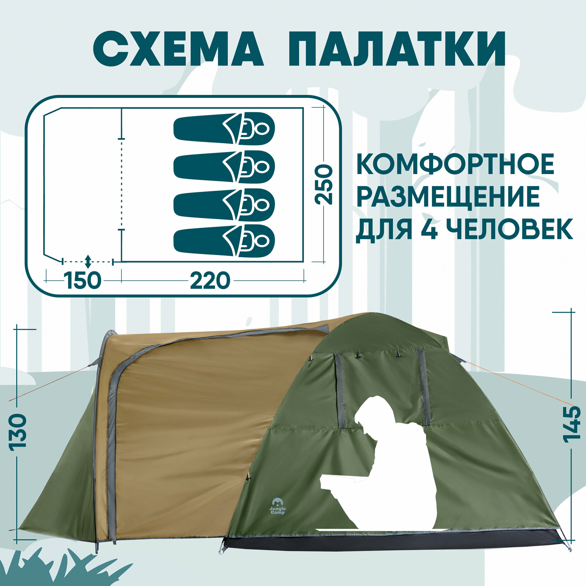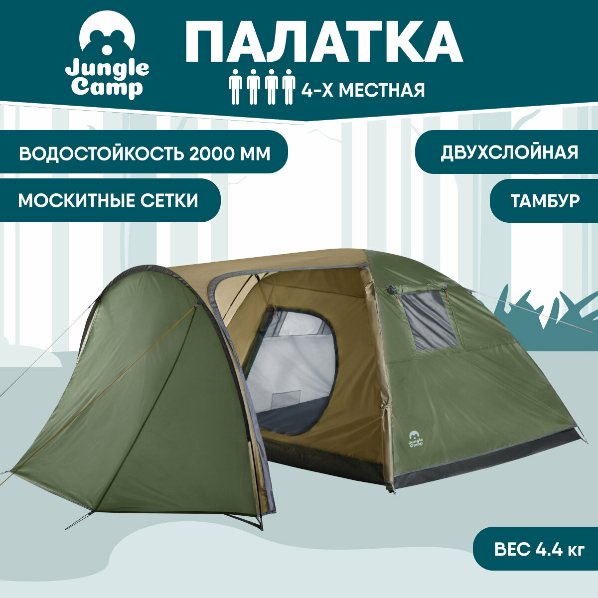 Палатка четырехместная JUNGLE CAMP Torino 4 , цвет: зеленый интересное: