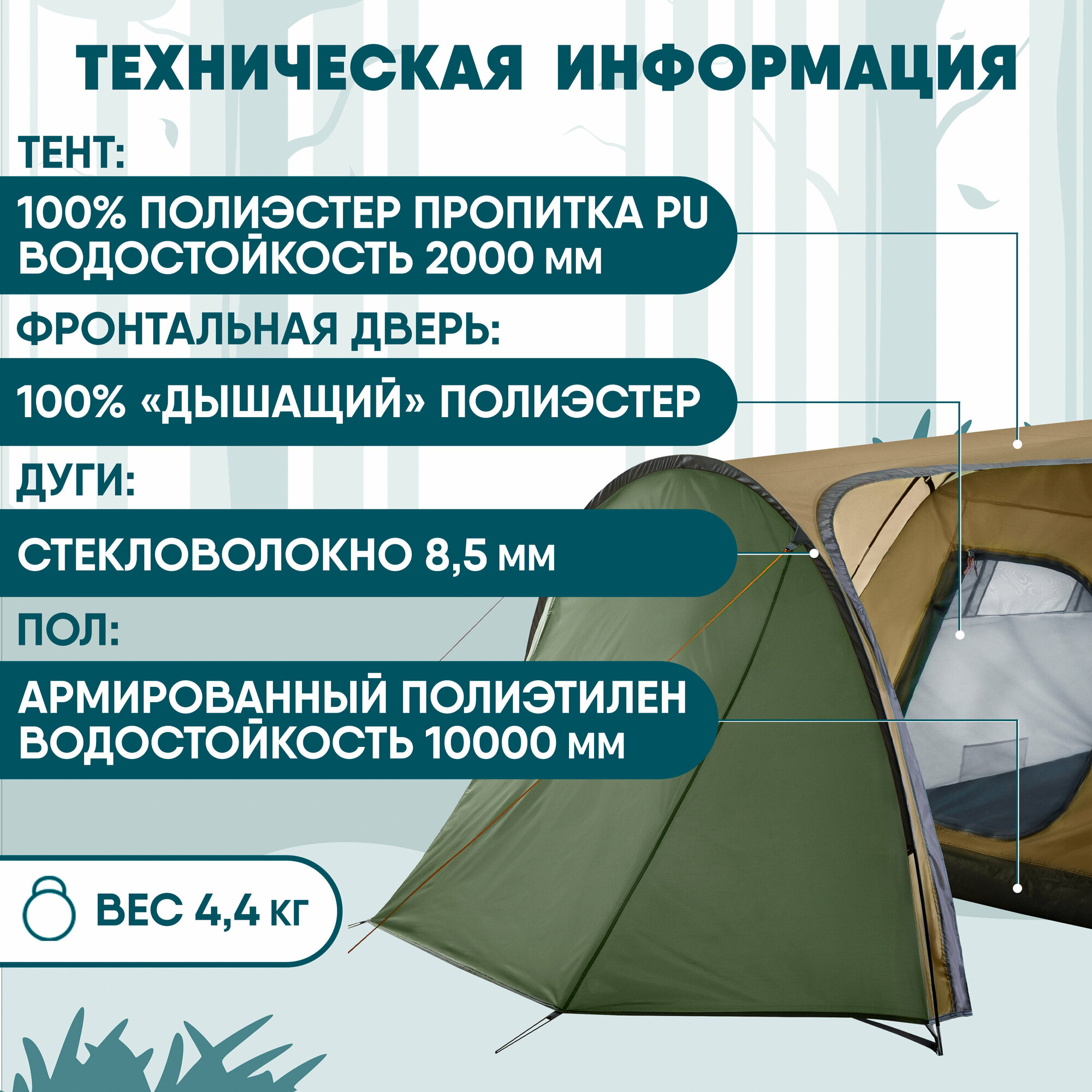 | Водостойкость тента/дна | 2000 / 10000 мм в.ст. |