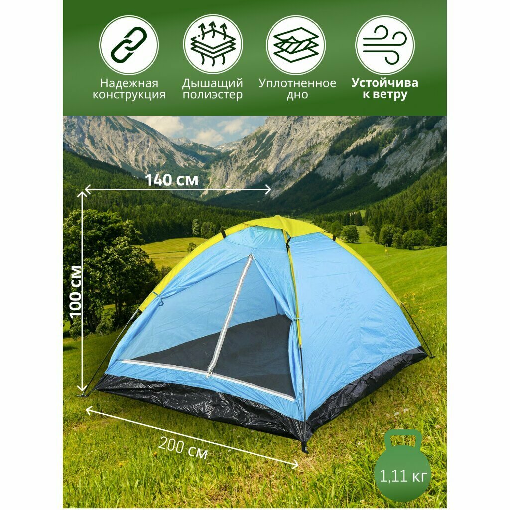 Купить Палатка 3-местная, 200х140х100 см, 1 слой, 1 комн, с москитной сеткой, Green Days, YTCT008-2