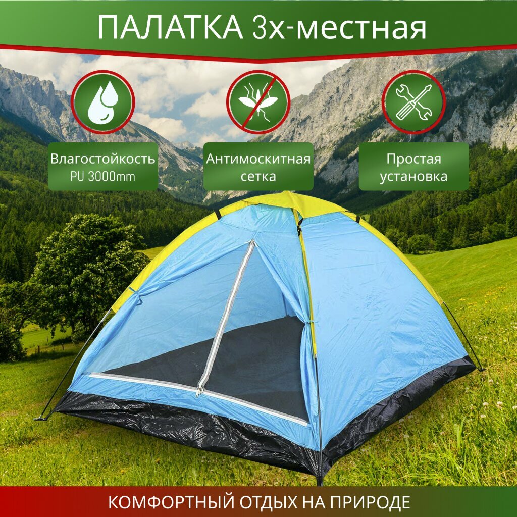 Палатка 3-местная, 200х140х100 см, 1 слой, 1 комн, с москитной сеткой, Green Days, YTCT008-2 интересное: